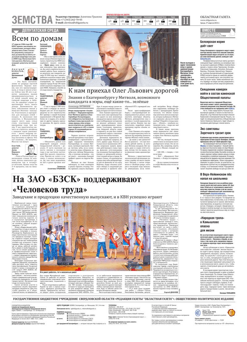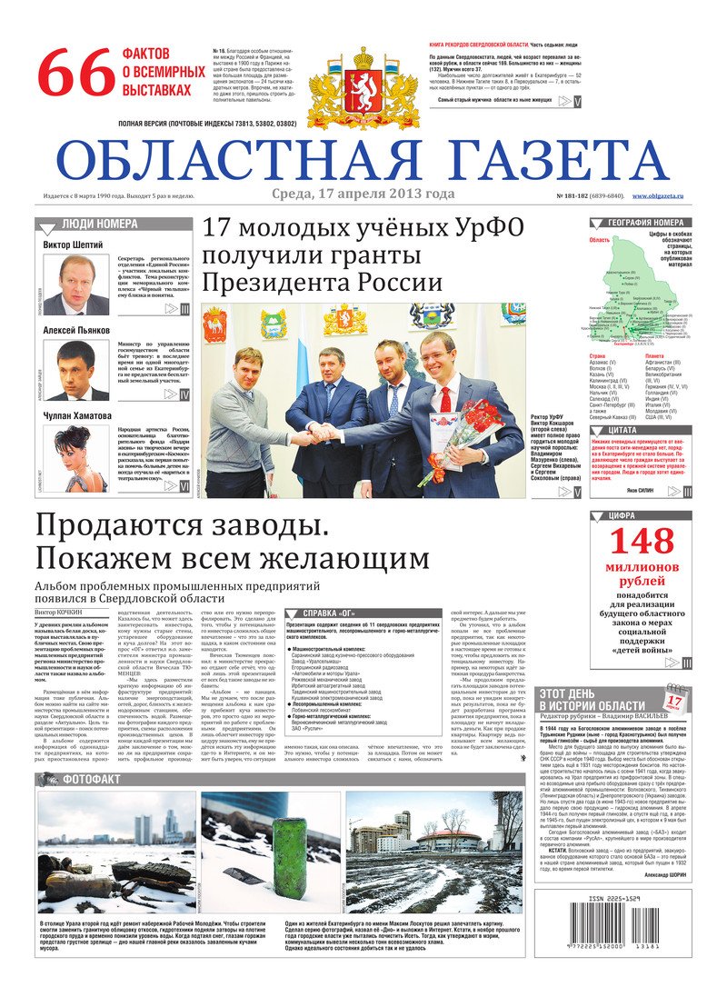 «Областная газета» № 181–182 (6839–6840) от 17 апреля 2013 года