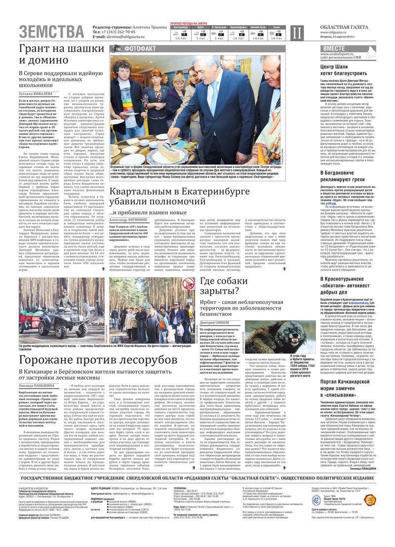 «Областная газета» № 189–190 (6847–6848) от 23 апреля 2013 года