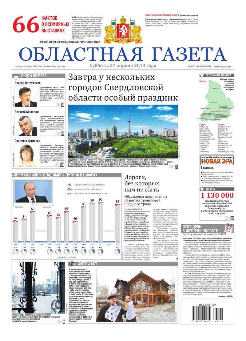 «Областная газета» № 197–198 (6855–6856) от 27 апреля 2013 года