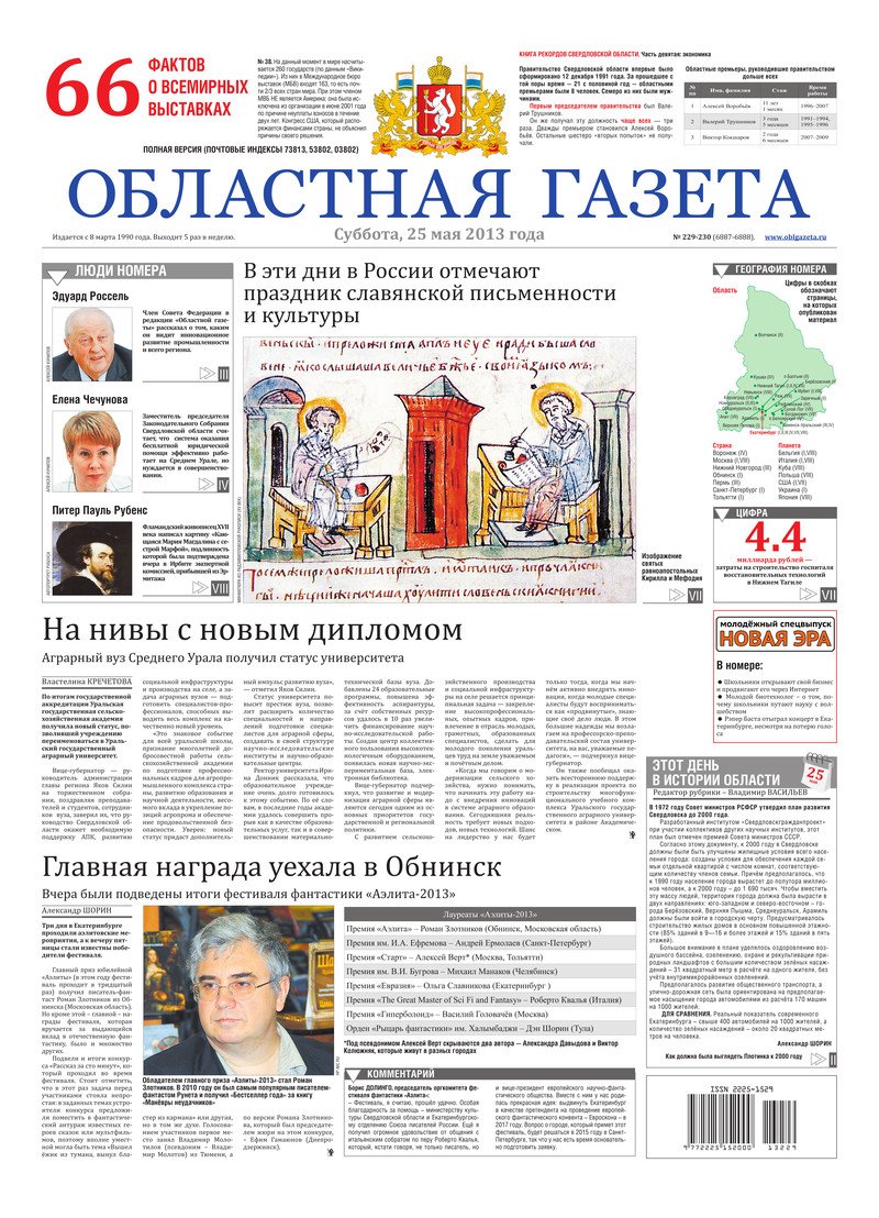 «Областная газета» № 229–230 (6887–6888) от 25 мая 2013 года