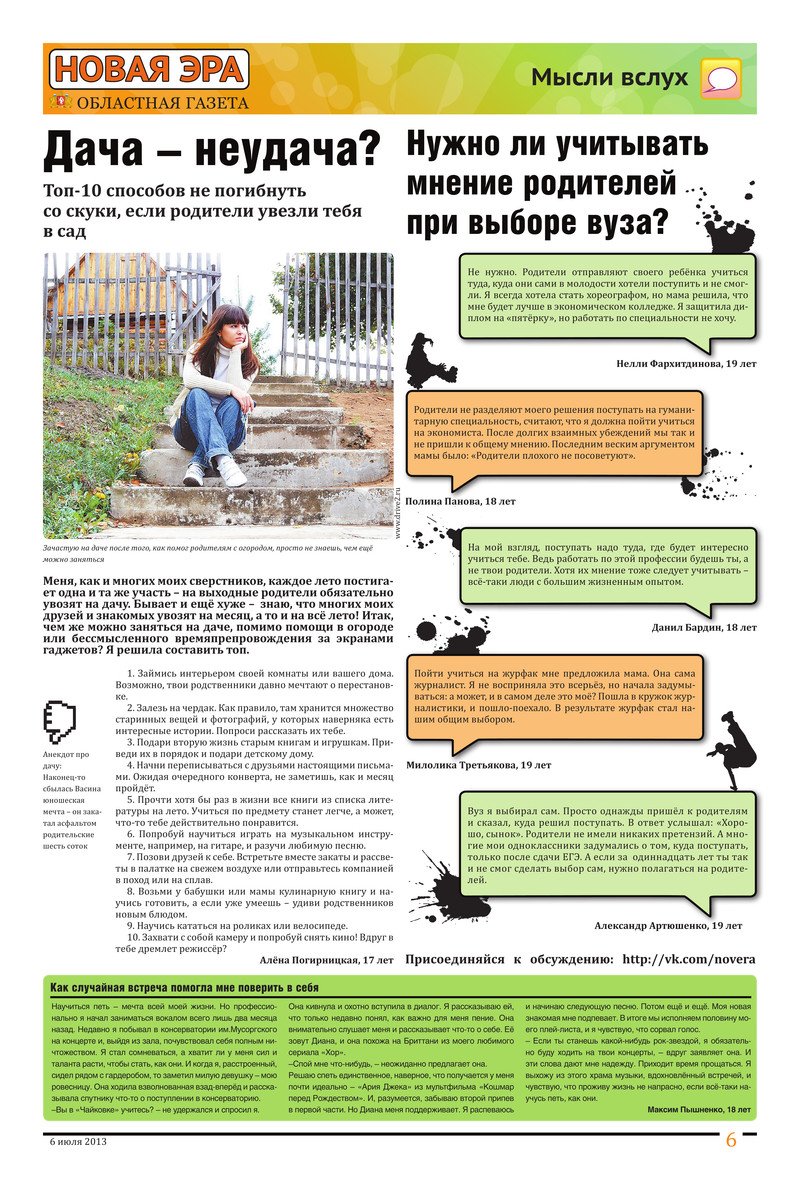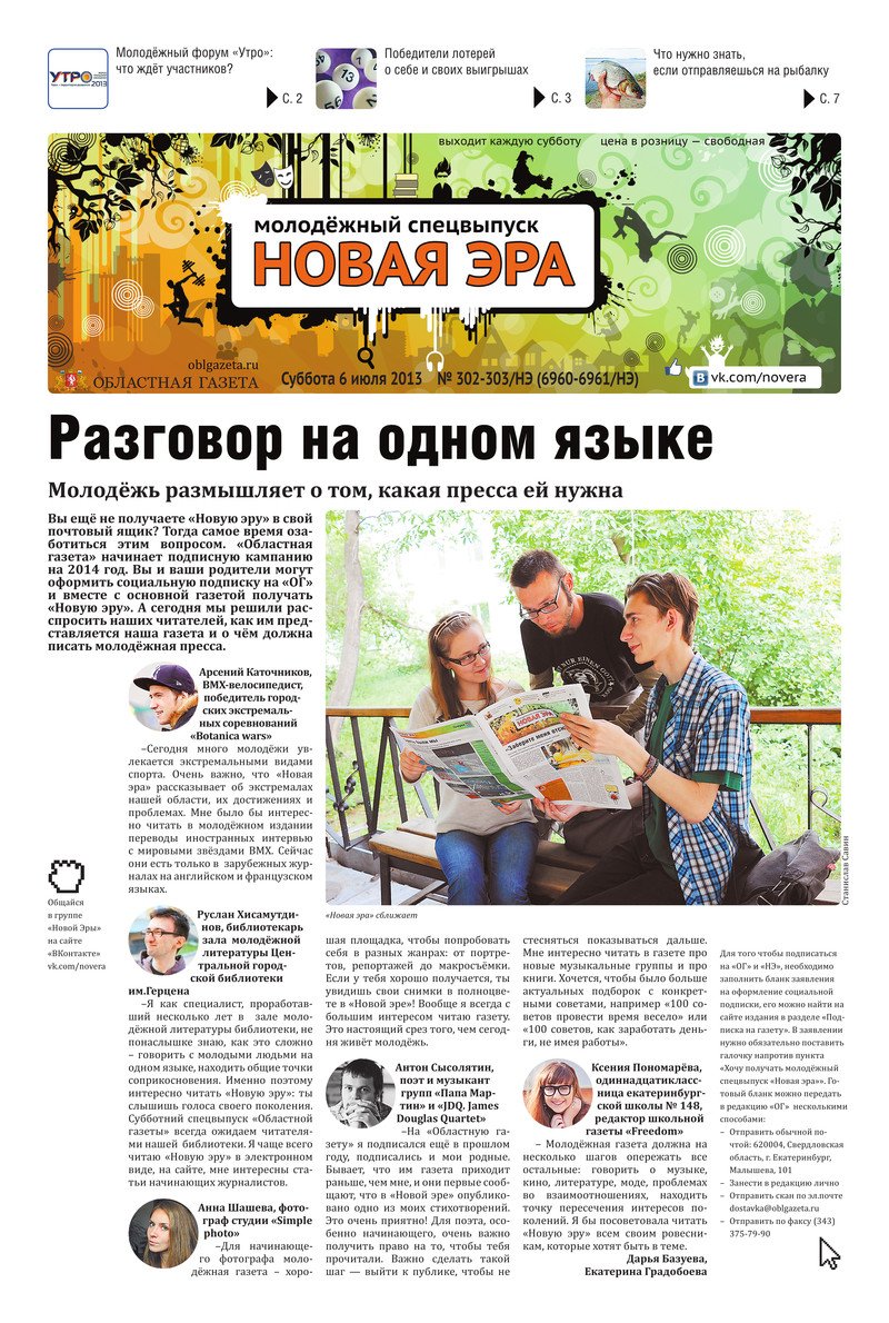 «Новая эра» № 302–303 (6960–6961) от 6 июля 2013 года