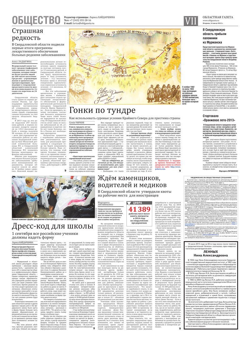 «Областная газета» № 328–333 (6986–6991) от 16 июля 2013 года