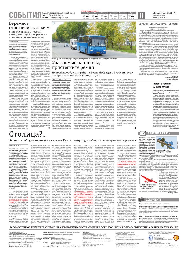 «Областная газета» № 351 (7009) от 27 июля 2013 года