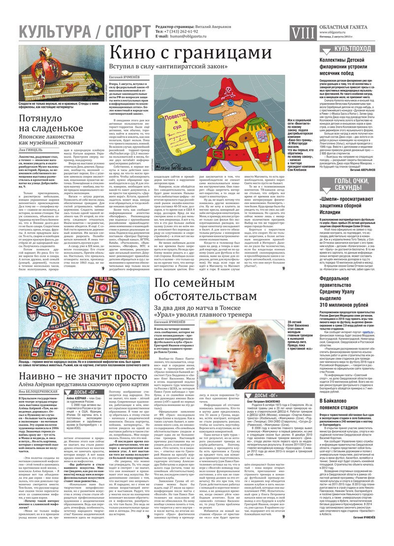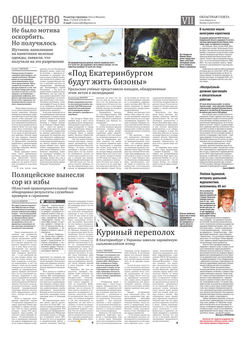 «Областная газета» № 358–359 (7016–7017) от 2 августа 2013 года