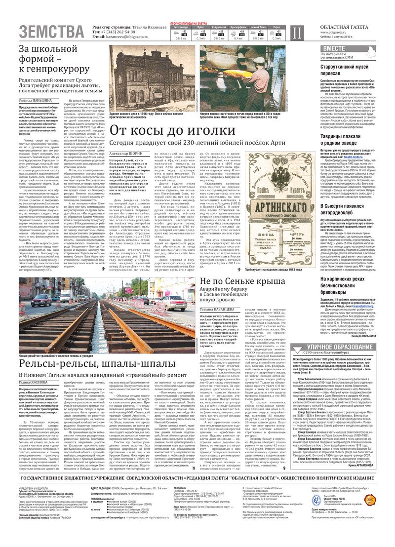 «Областная газета» № 360–361 (7018–7019) от 3 августа 2013 года