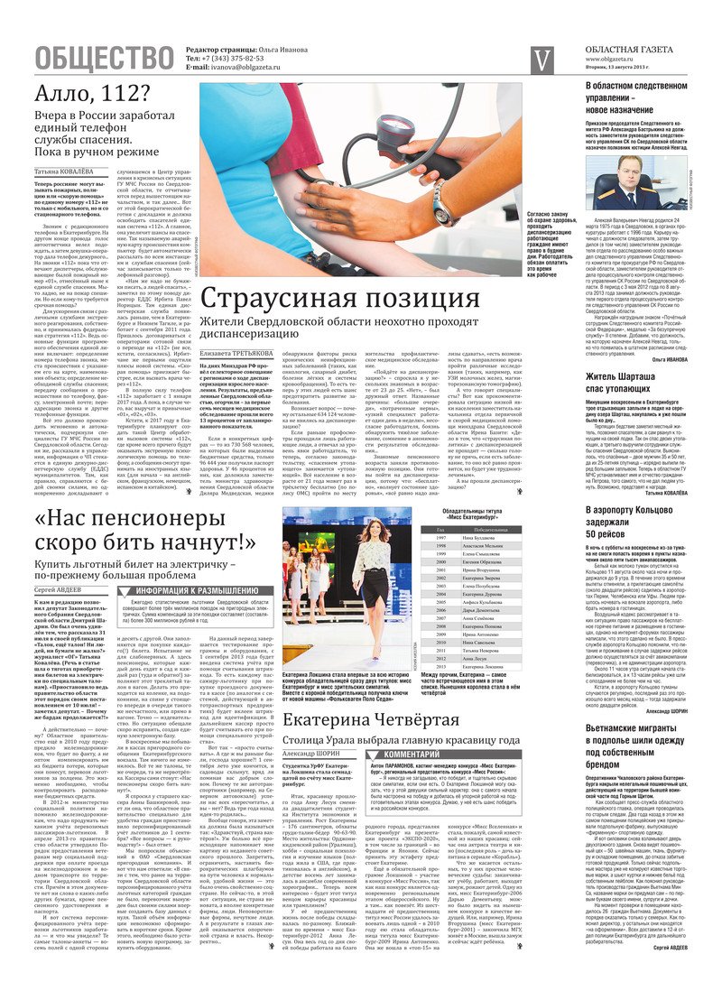 «Областная газета» № 375–377 (7033–7035) от 13 августа 2013 года