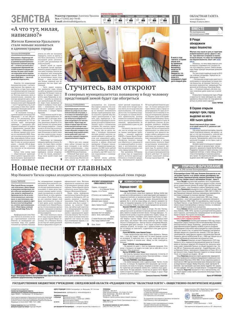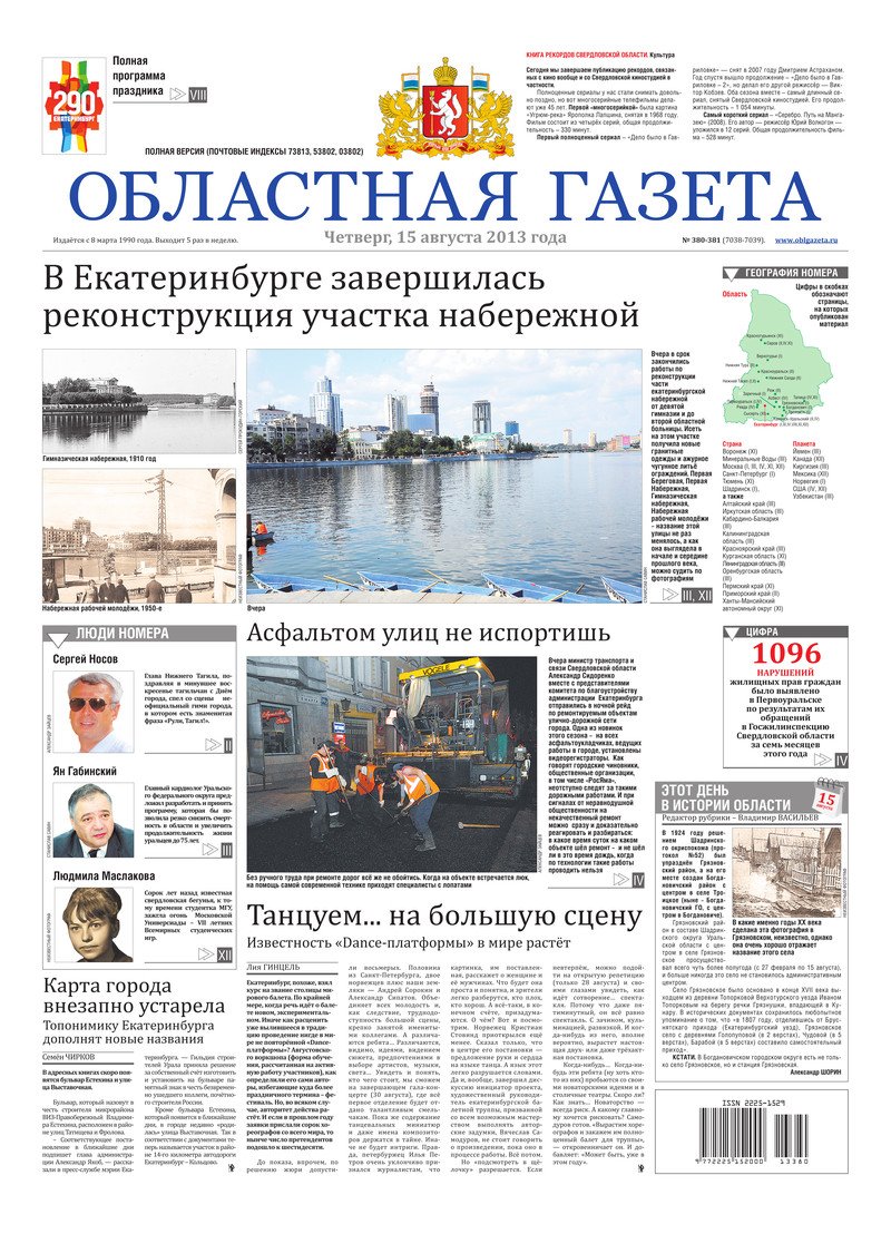 «Областная газета» № 380–381 (7038–7039) от 15 августа 2013 года