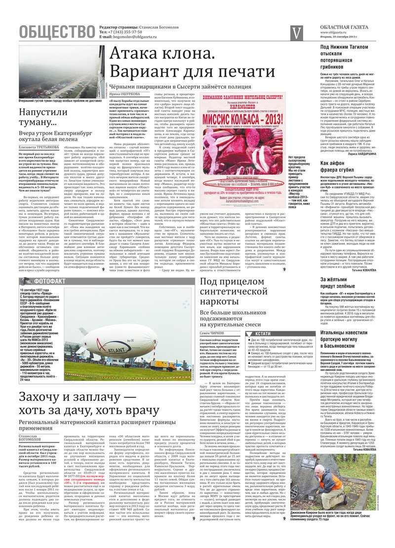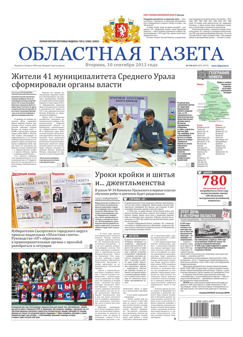 «Областная газета» № 418–419 (7076–7077) от 10 сентября 2013 года