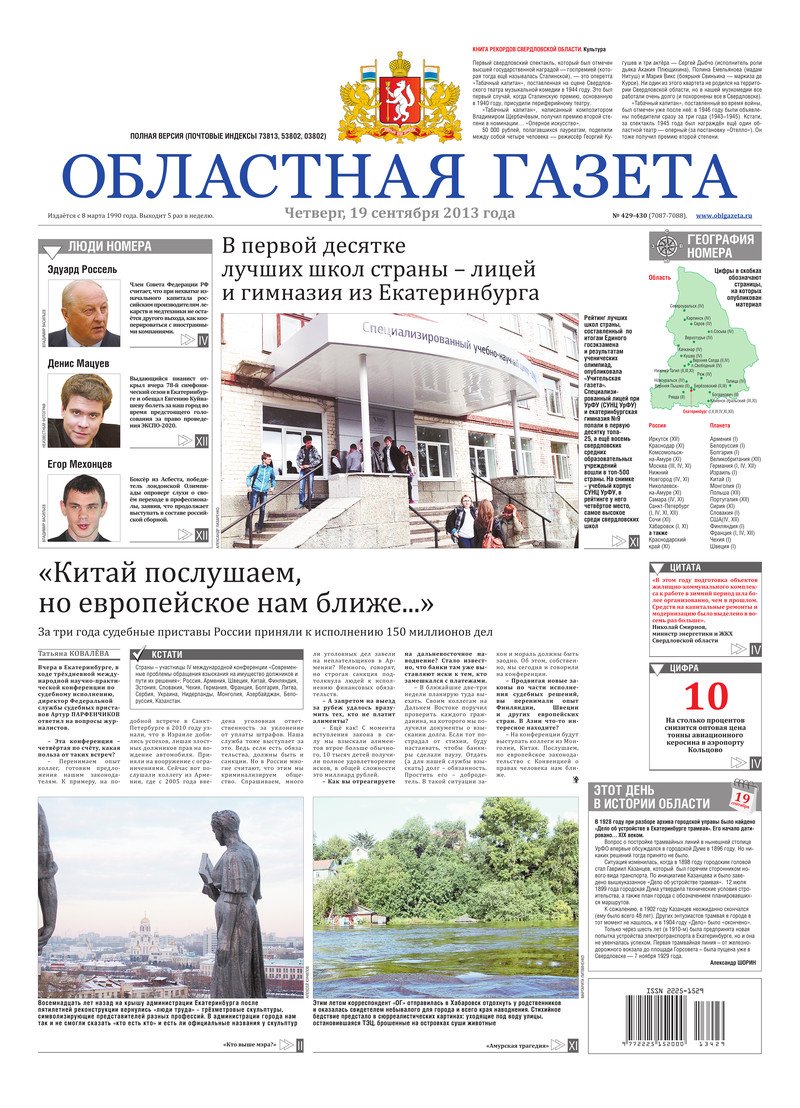 «Областная газета» № 429–430 (7087–7088) от 19 сентября 2013 года