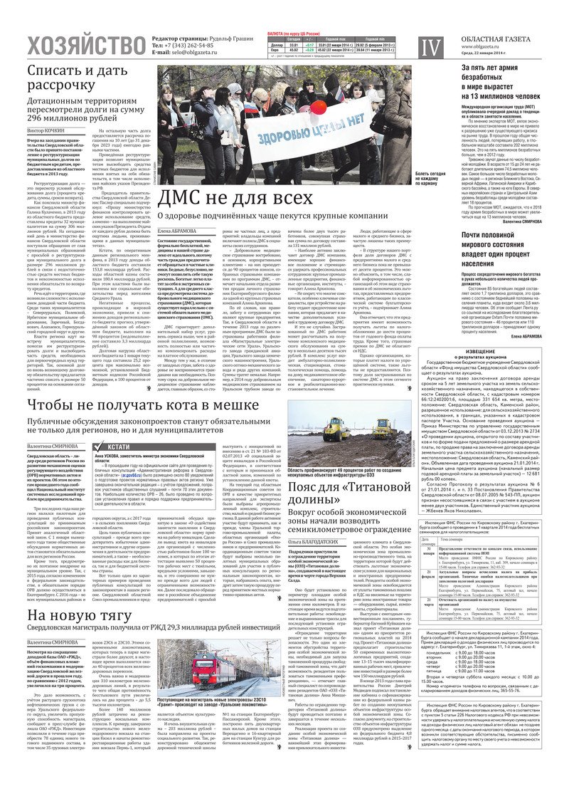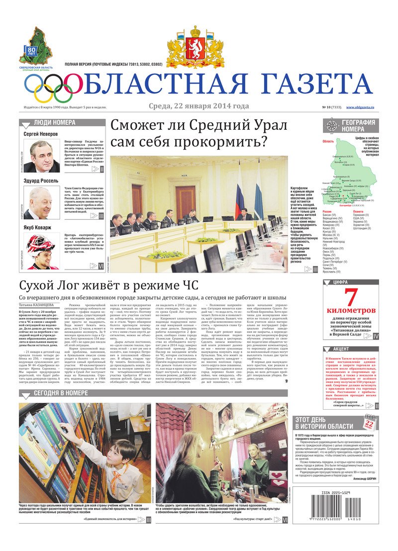 «Областная газета» № 10 (7333) от 22 января 2014 года