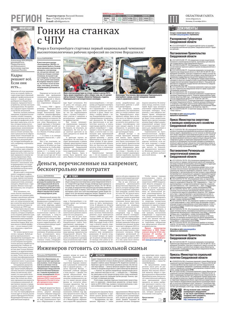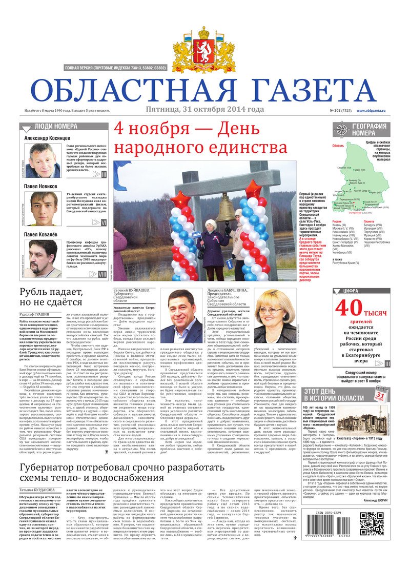 «Областная газета» № 202 (7525) от 31 октября 2014 года