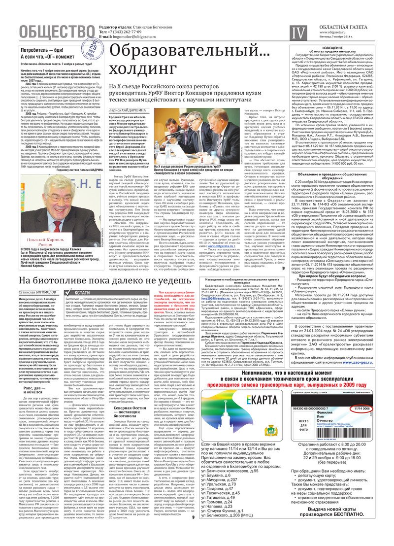 «Областная газета» № 205 (7528) от 7 ноября 2014 года
