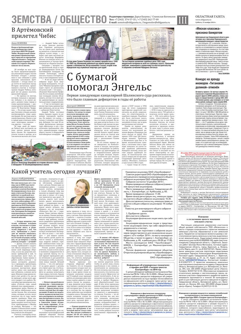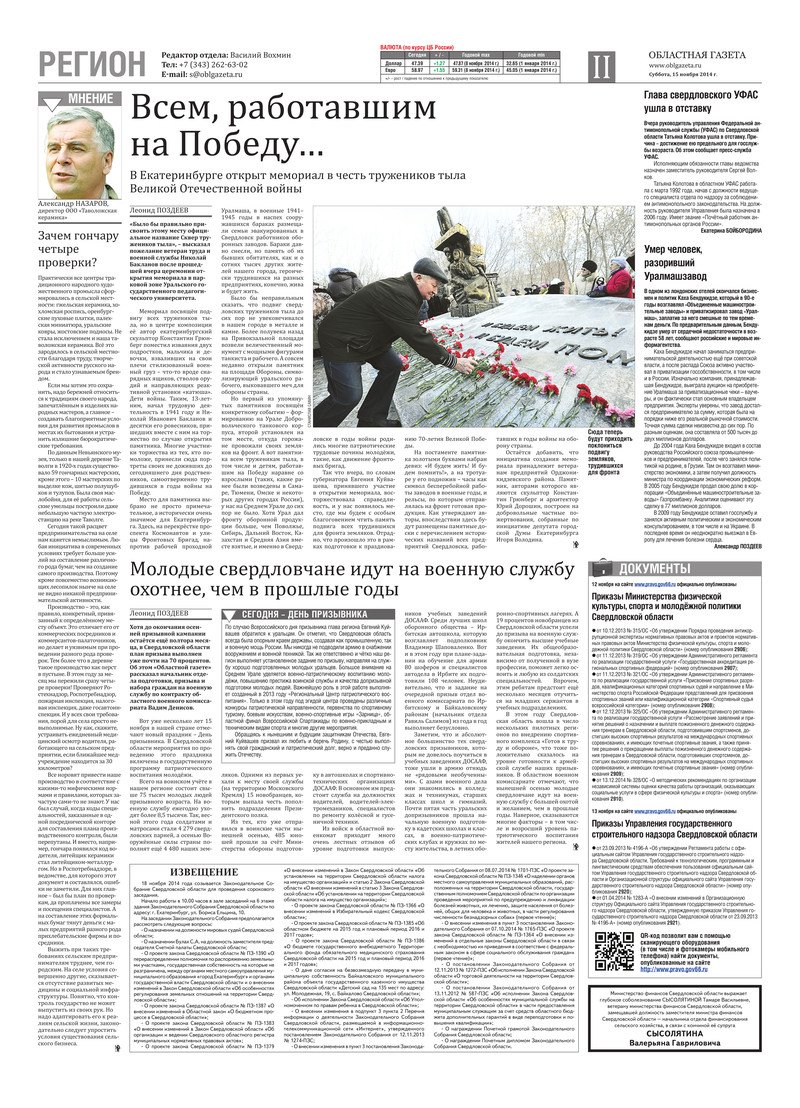 «Областная газета» № 211 (7534) от 15 ноября 2014 года