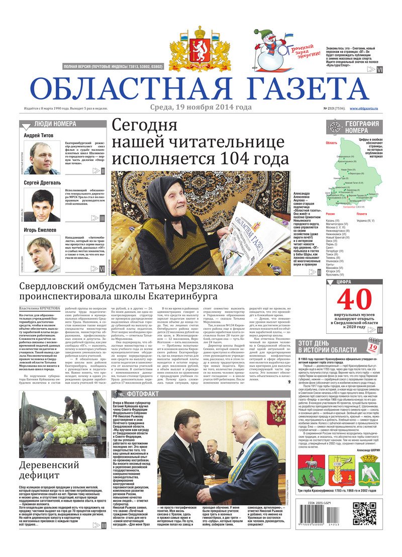 «Областная газета» № 213 (7536) от 19 ноября 2014 года