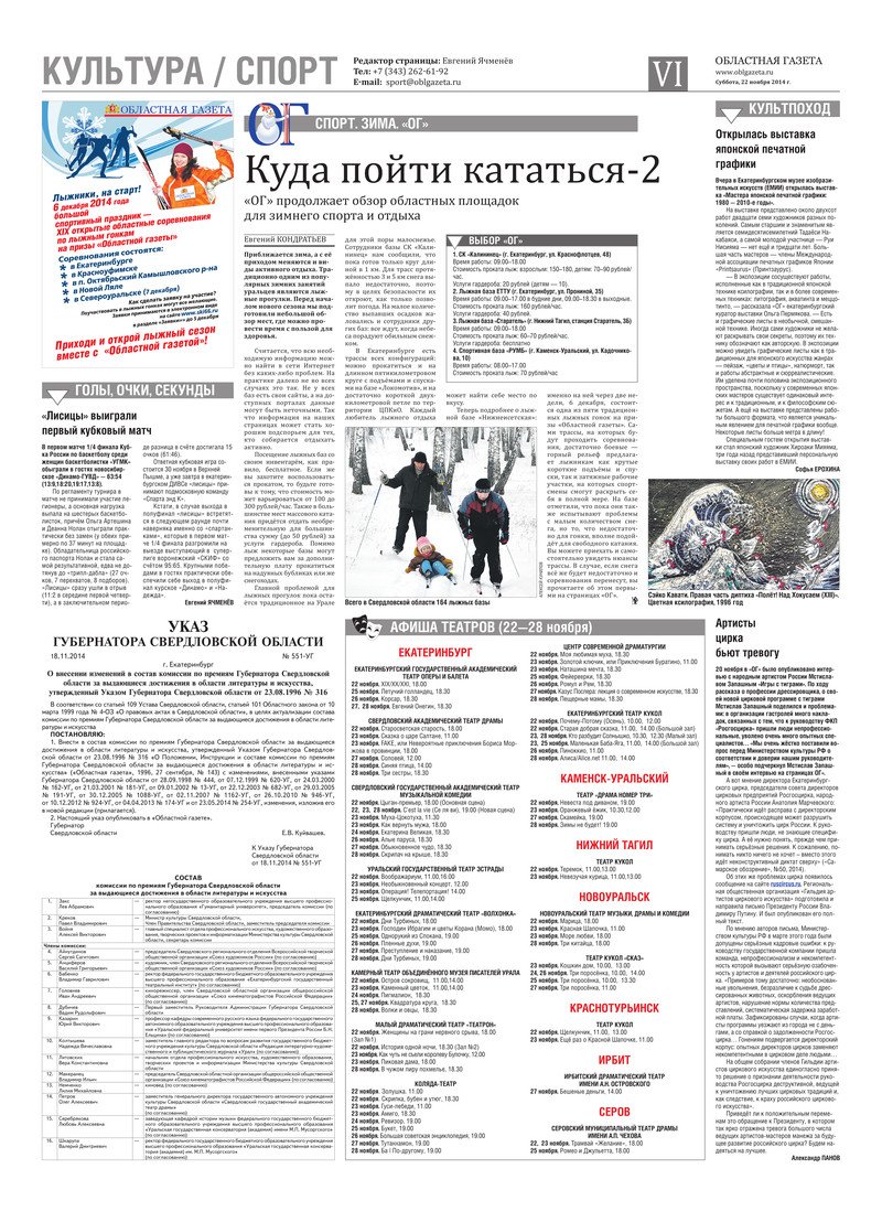 «Областная газета» № 216 (7539) от 22 ноября 2014 года