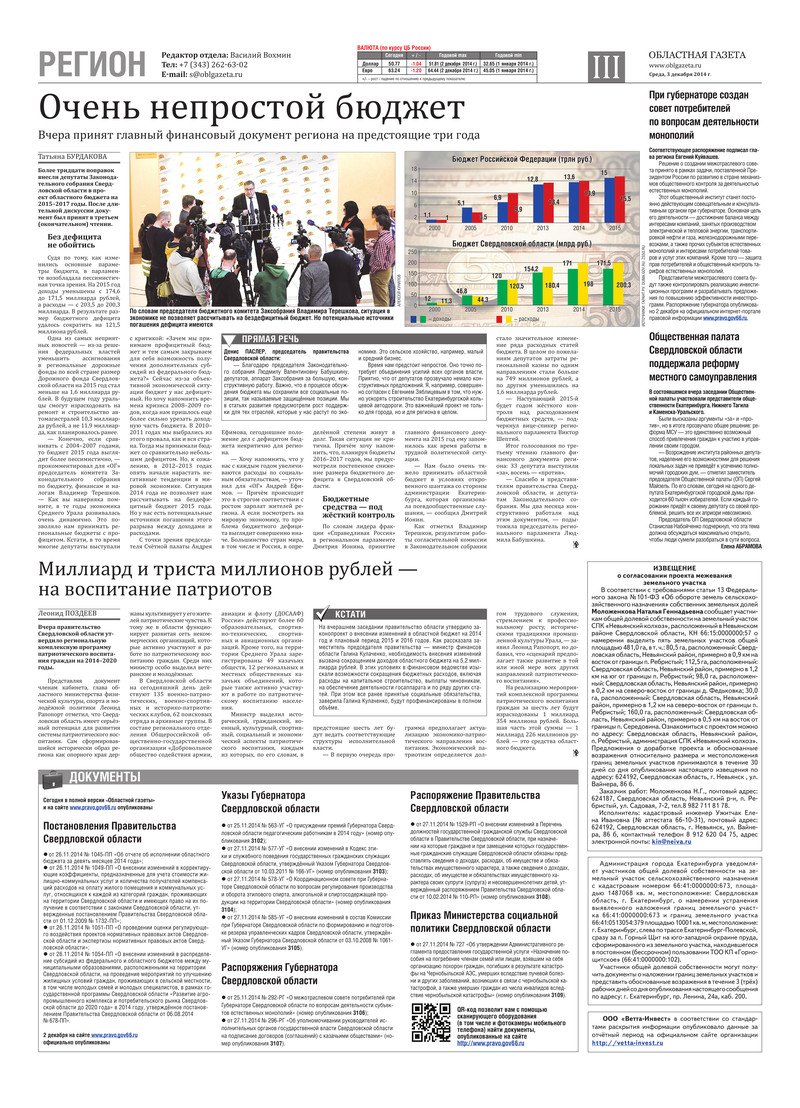 «Областная газета» № 223 (7546) от 3 декабря 2014 года