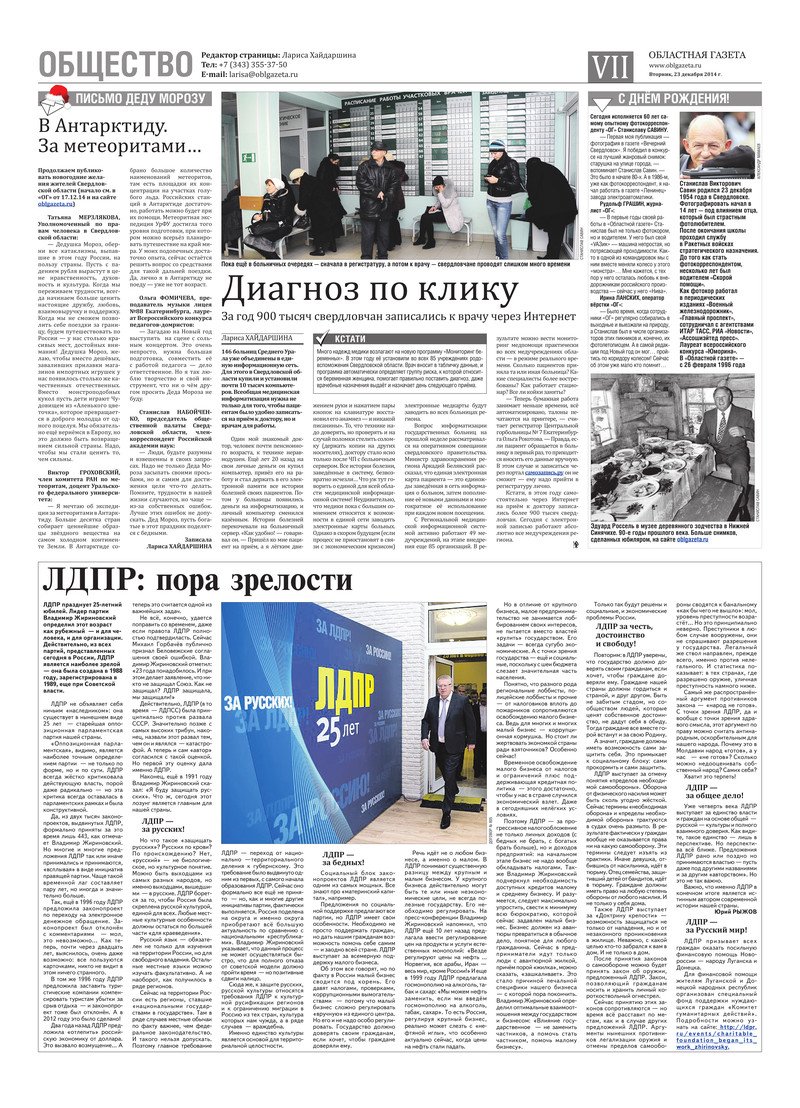 «Областная газета» № 237 (7560) от 23 декабря 2014 года