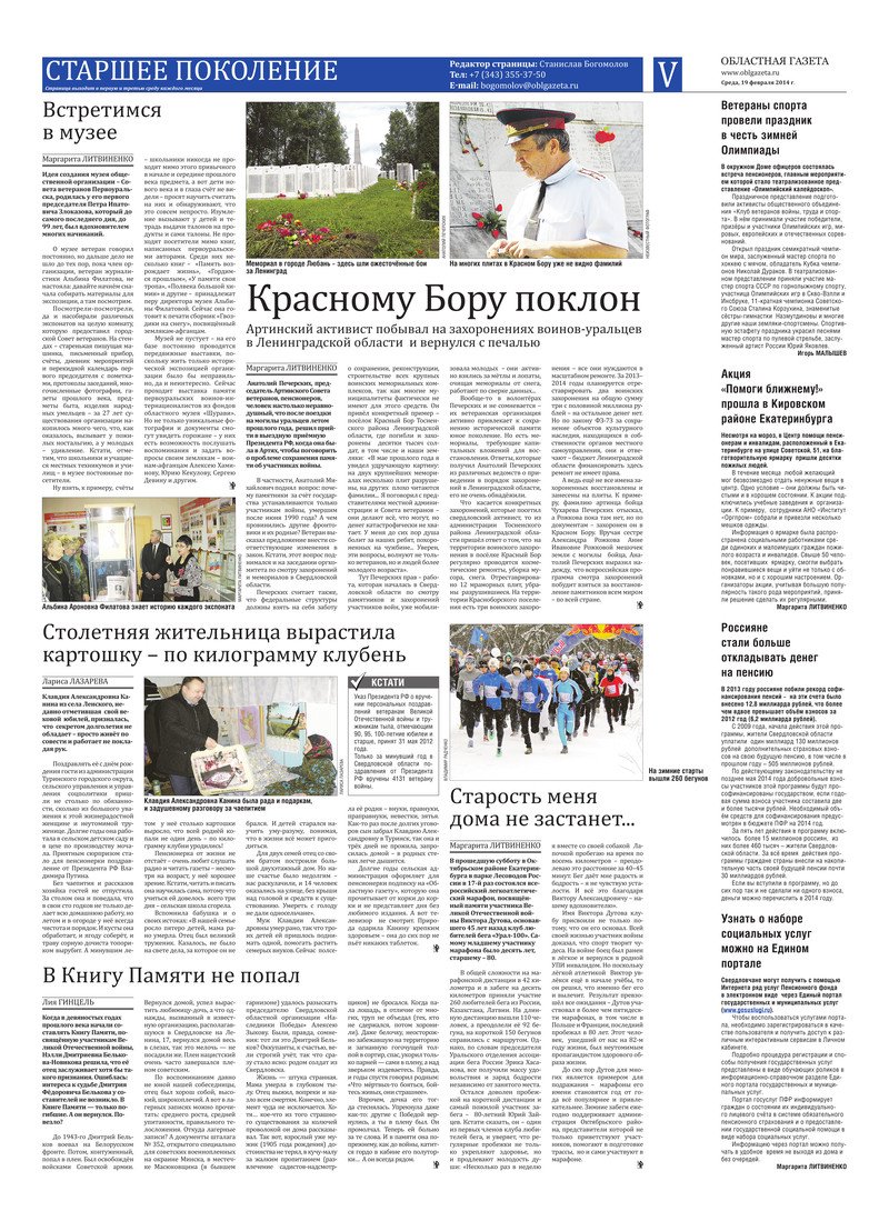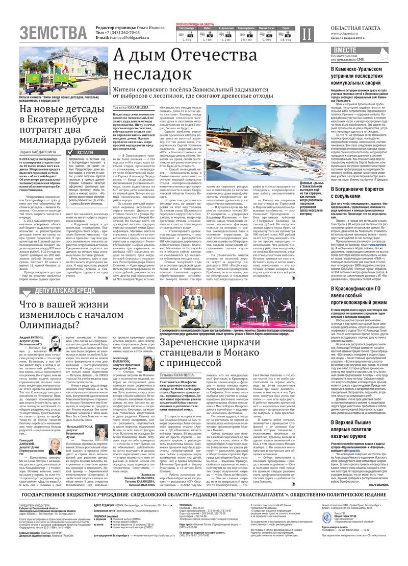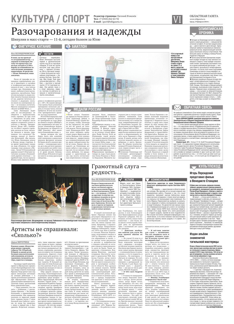 «Областная газета» № 30 (7353) от 19 февраля 2014 года