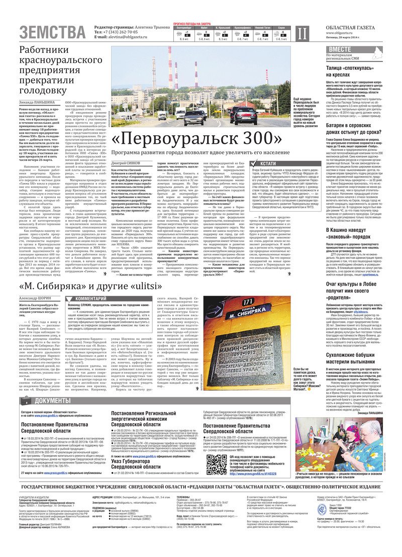 «Областная газета» № 55 (7378) от 28 марта 2014 года