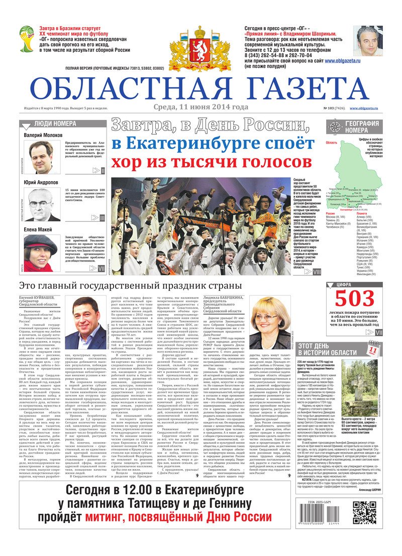 «Областная газета» № 103 (7426) от 11 июня 2014 года
