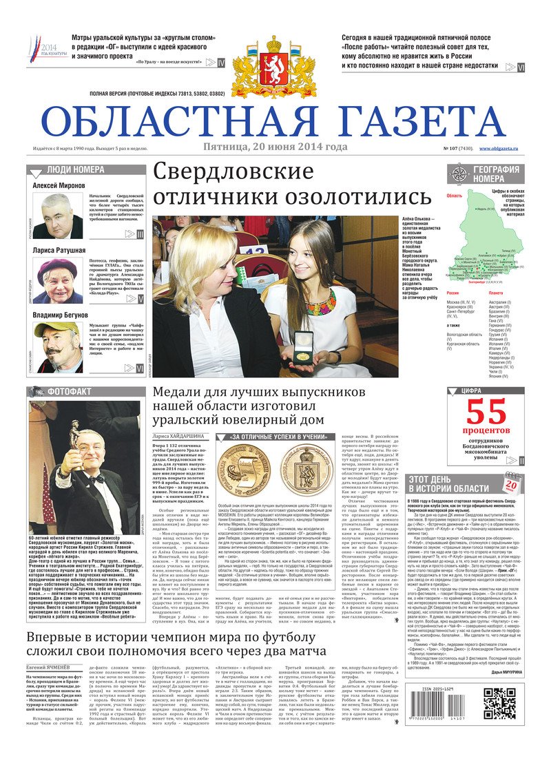 «Областная газета» № 107 (7430) от 20 июня 2014 года