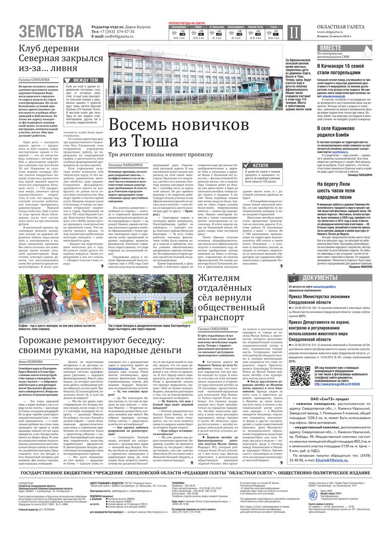 «Областная газета» № 154 (7477) от 26 августа 2014 года