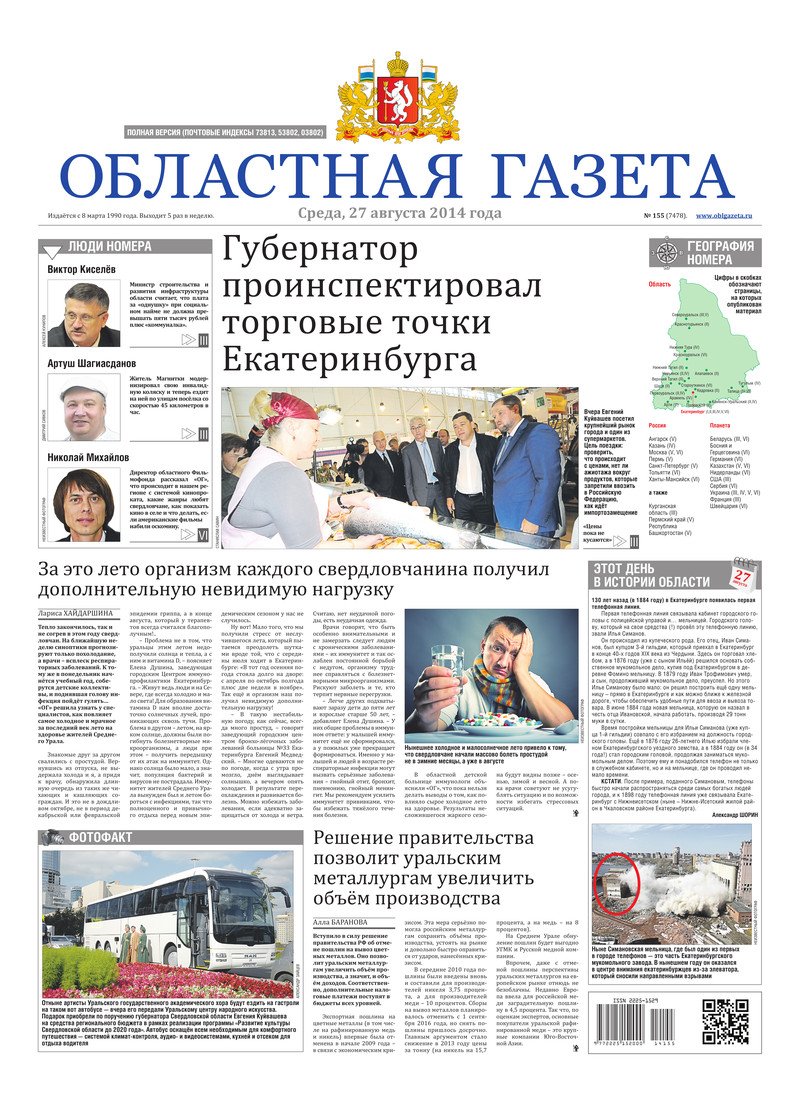 «Областная газета» № 155 (7478) от 27 августа 2014 года