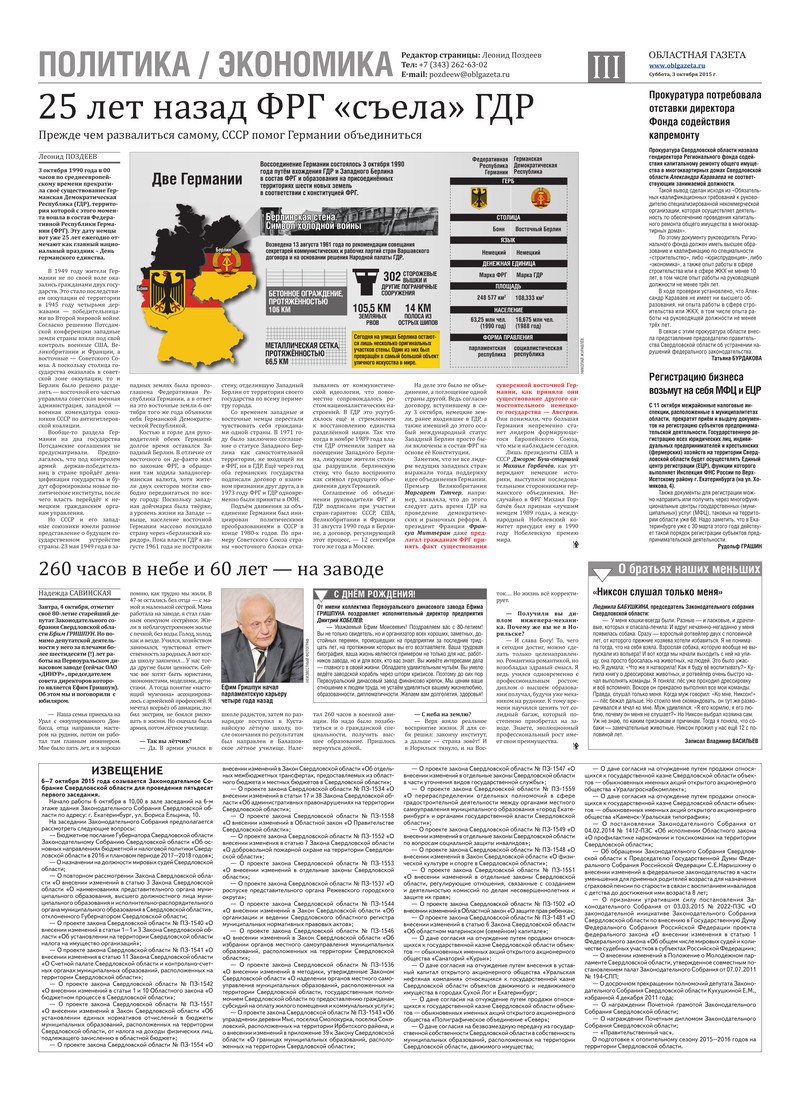 «Областная газета» № 182 (7748) от 3 октября 2015 года