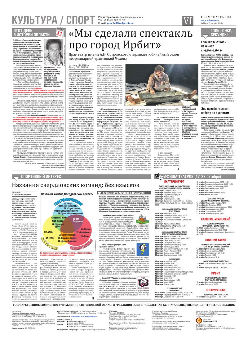«Областная газета» № 192 (7758) от 17 октября 2015 года