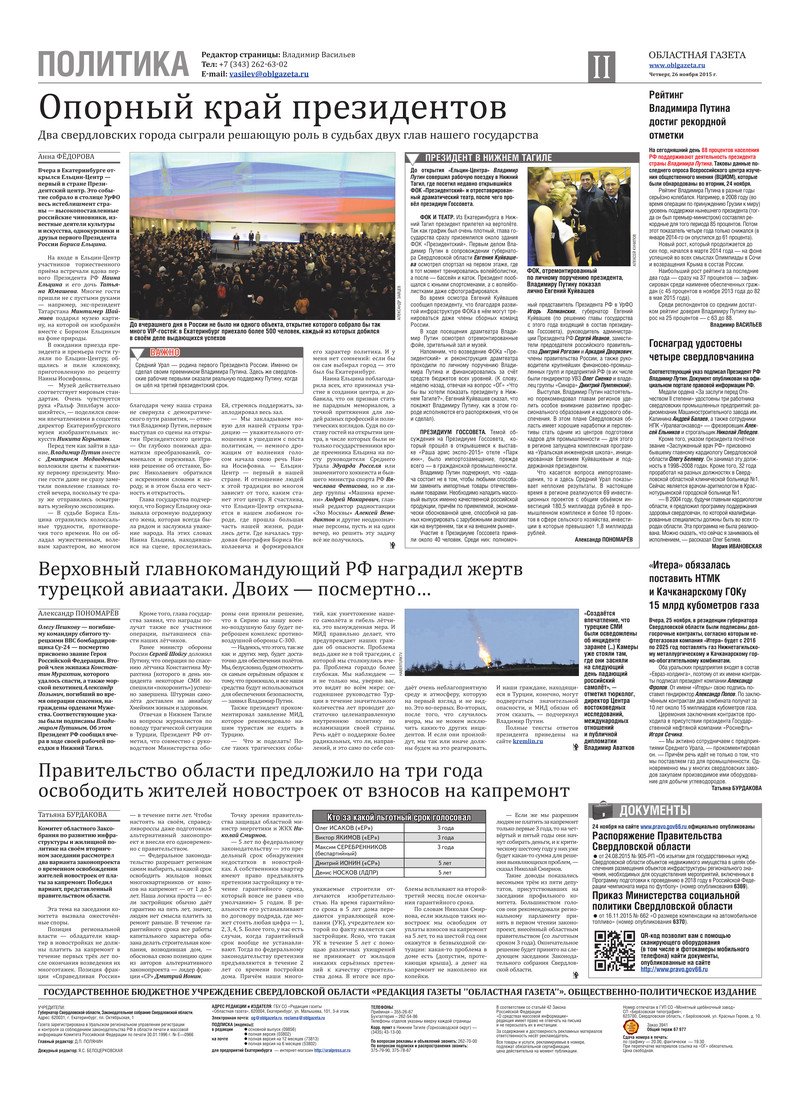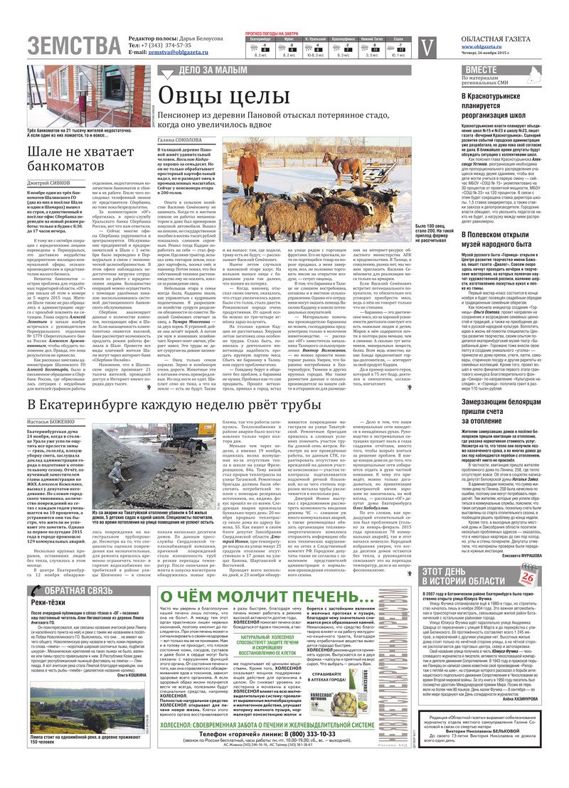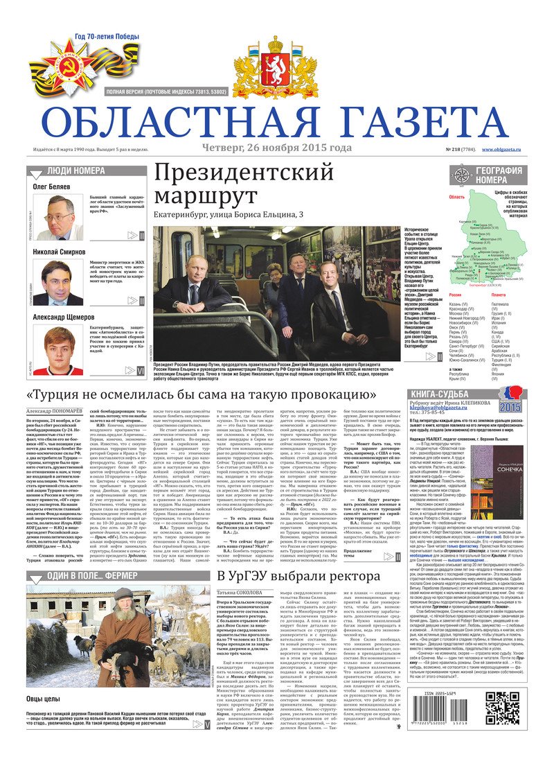«Областная газета» № 218 (7784) от 26 ноября 2015 года