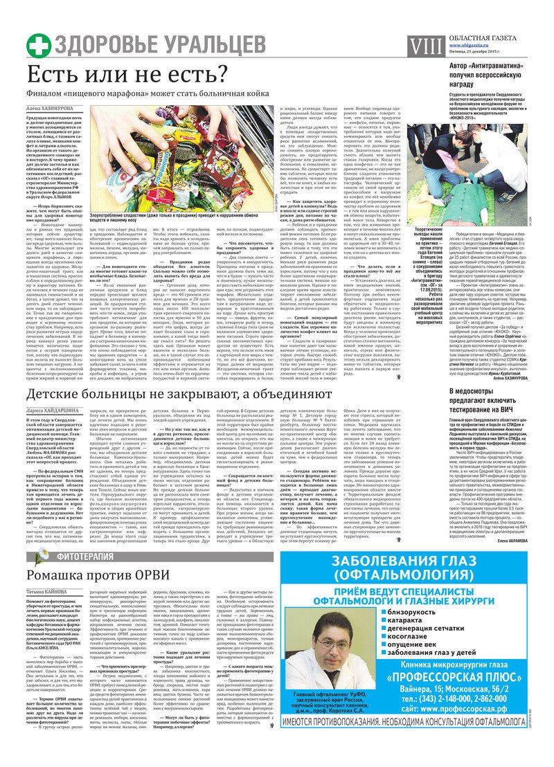 «Областная газета» № 239 (7805) от 25 декабря 2015 года
