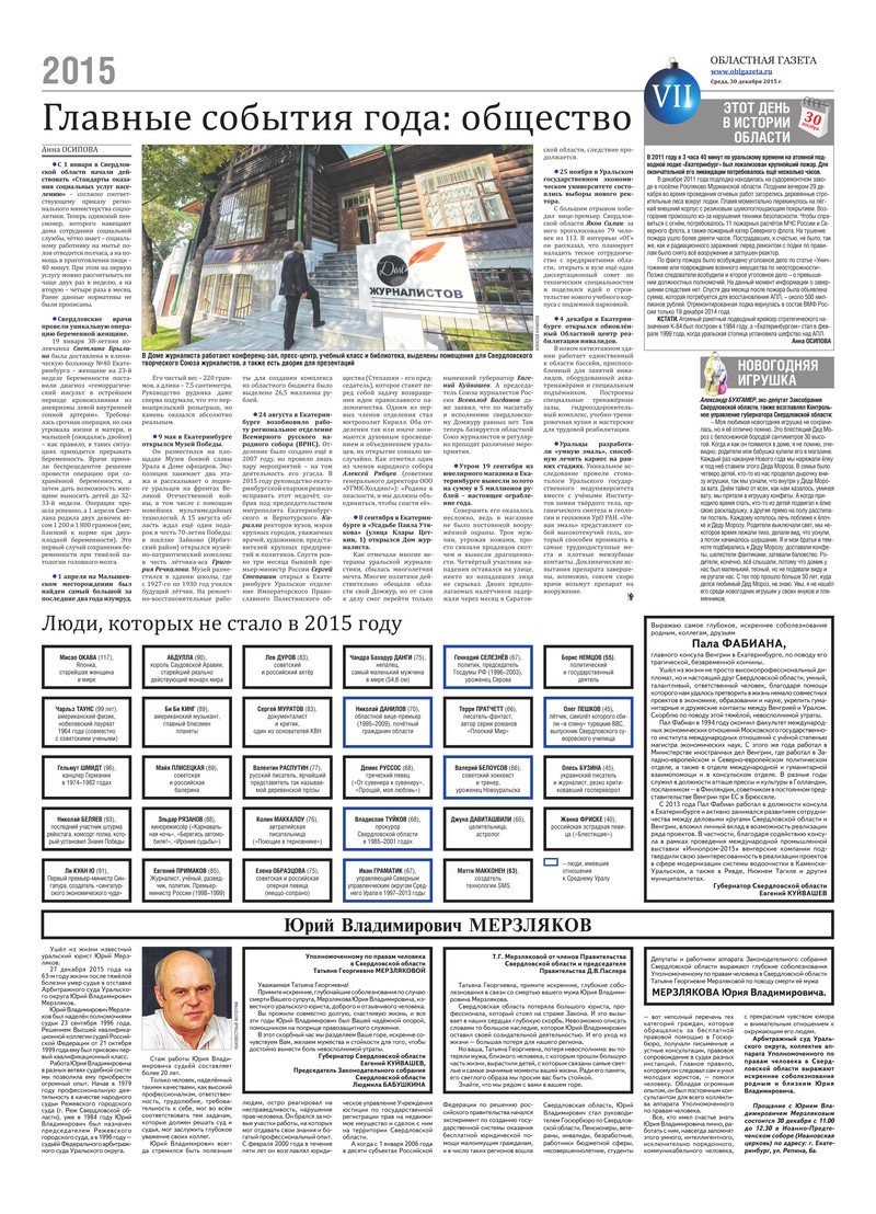 «Областная газета» № 242 (7808) от 30 декабря 2015 года
