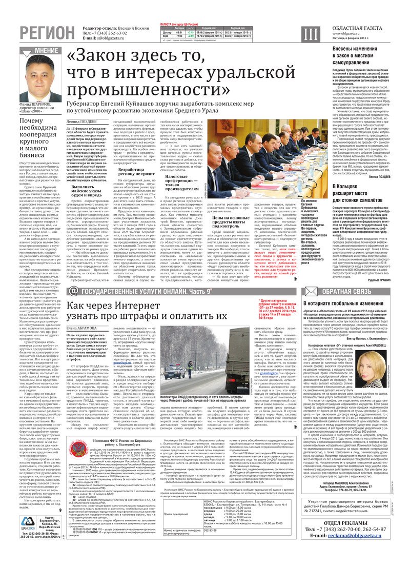 «Областная газета» № 20 (7586) от 6 февраля 2015 года