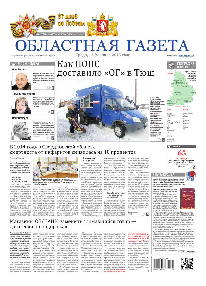 «Областная газета» № 23 (7589) от 11 февраля 2015 года