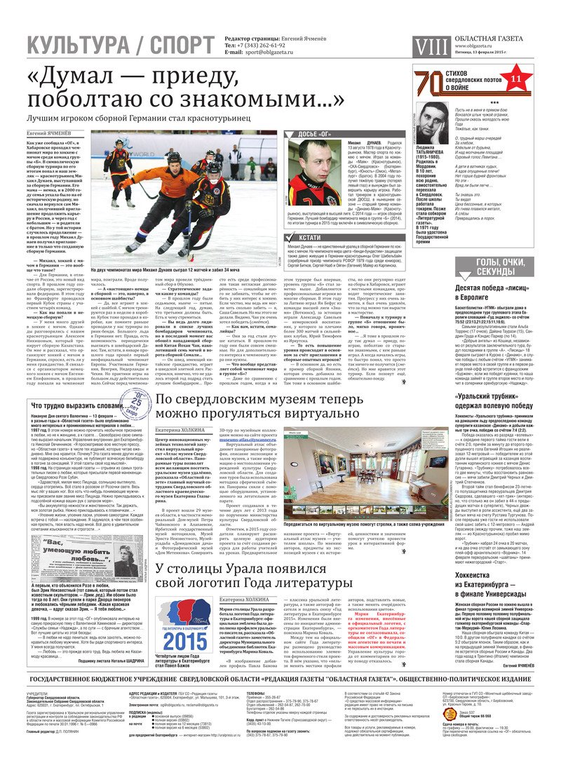 «Областная газета» № 25 (7591) от 13 февраля 2015 года