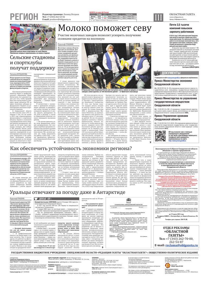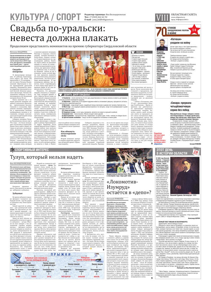«Областная газета» № 28 (7594) от 18 февраля 2015 года