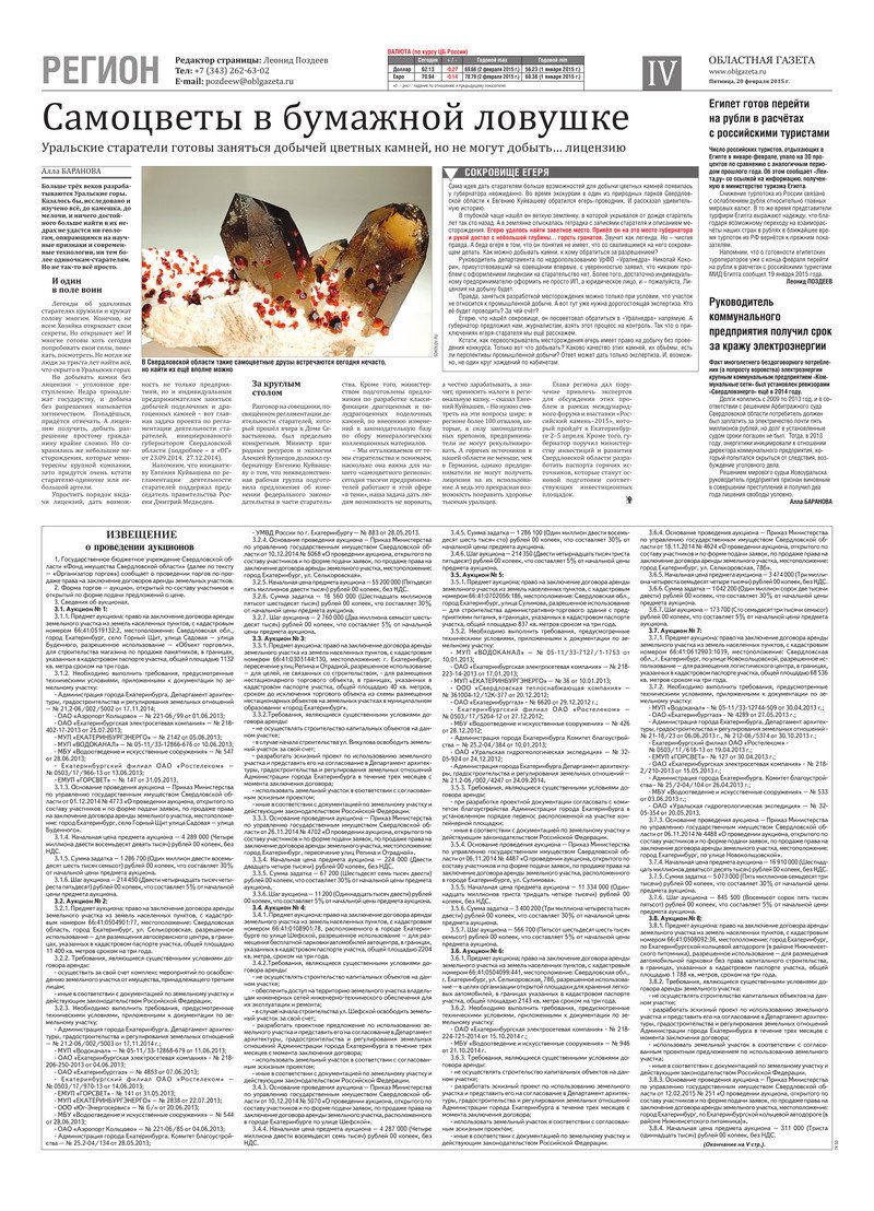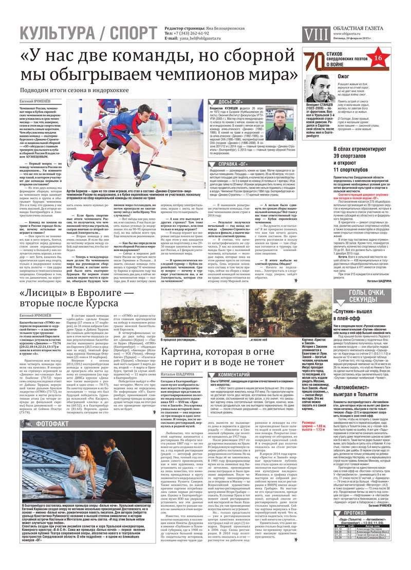 «Областная газета» № 30 (7596) от 20 февраля 2015 года
