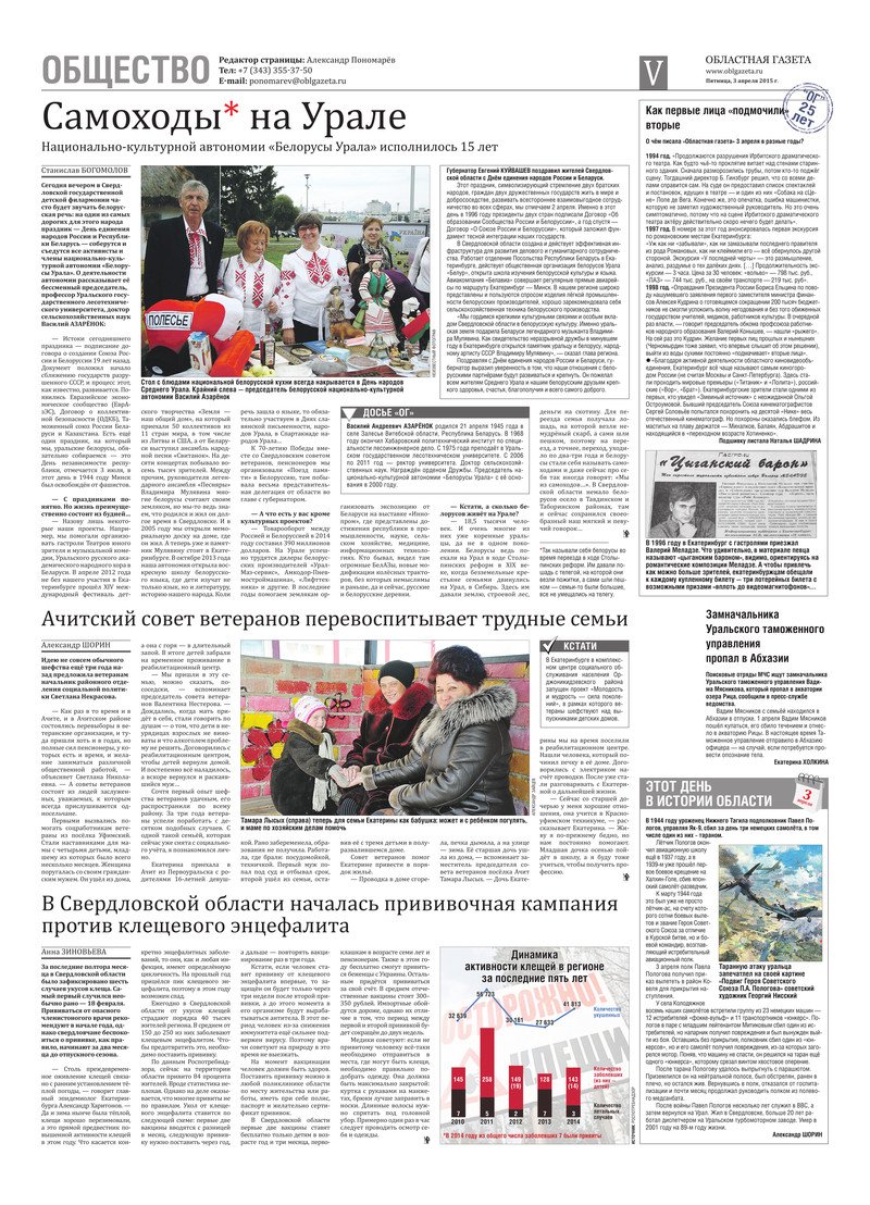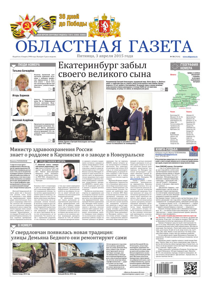 «Областная газета» № 58 (7624) от 3 апреля 2015 года