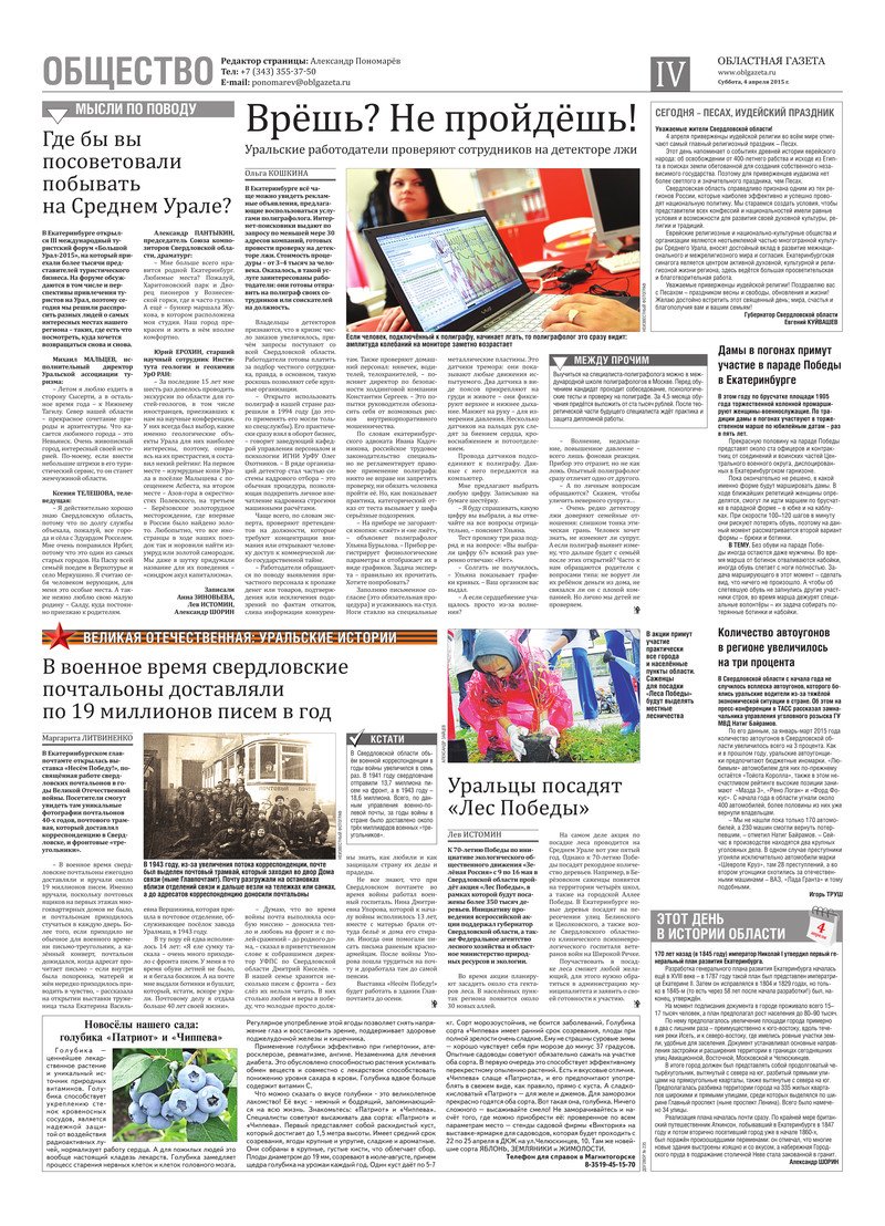 «Областная газета» № 59 (7625) от 4 апреля 2015 года