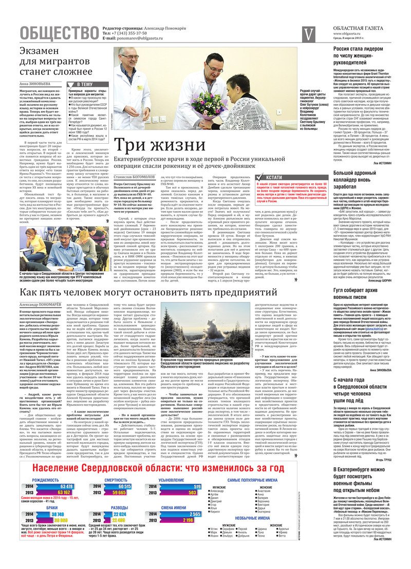 «Областная газета» № 61 (7627) от 8 апреля 2015 года