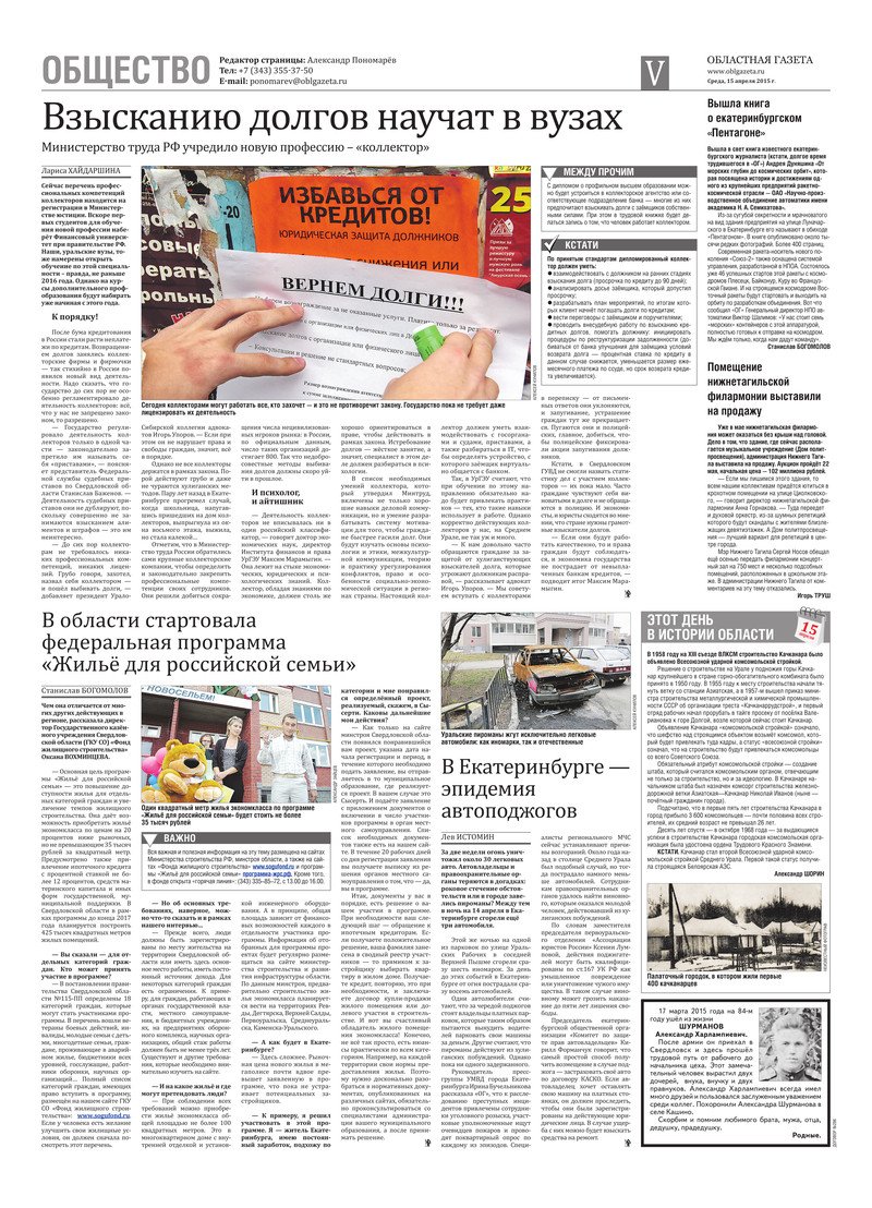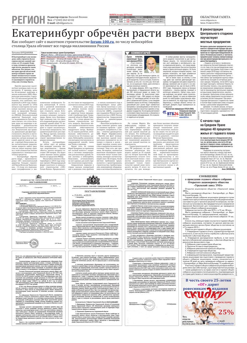 «Областная газета» № 66 (7632) от 15 апреля 2015 года