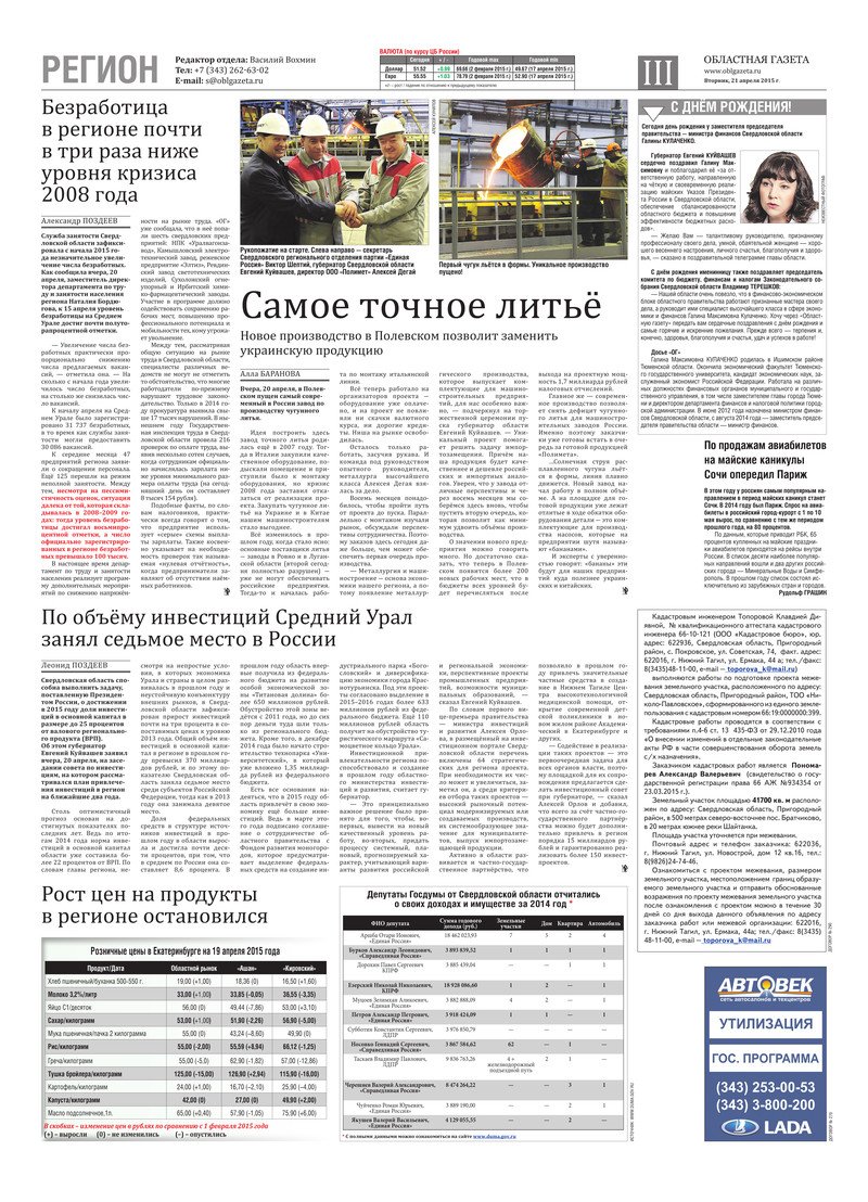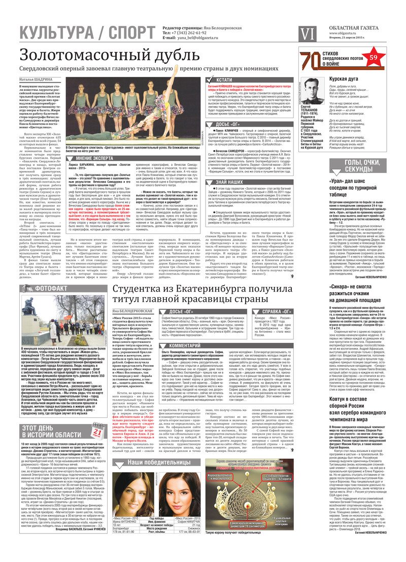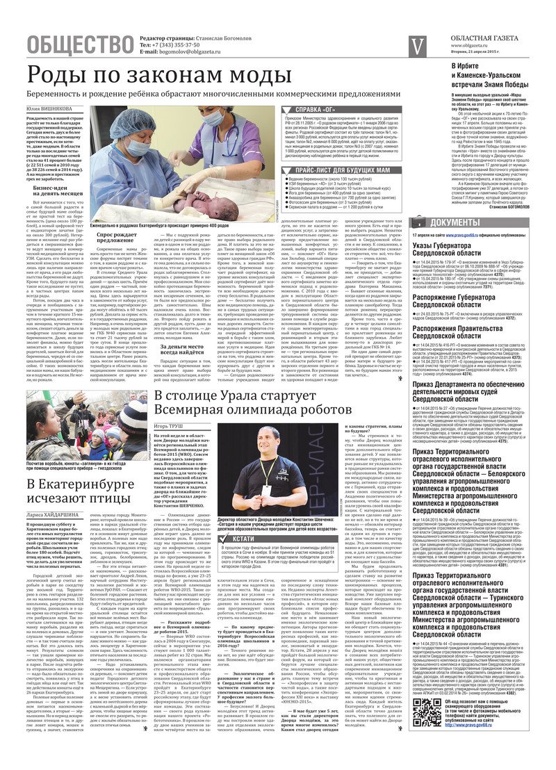 «Областная газета» № 70 (7636) от 21 апреля 2015 года