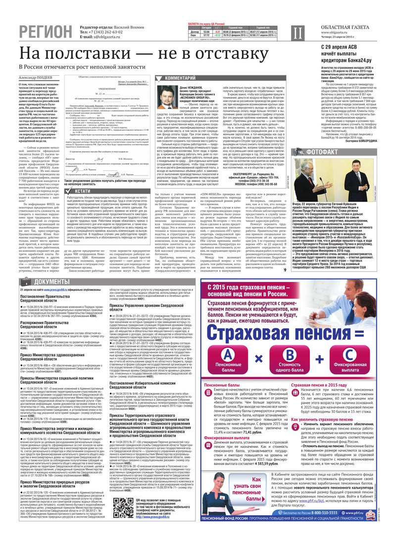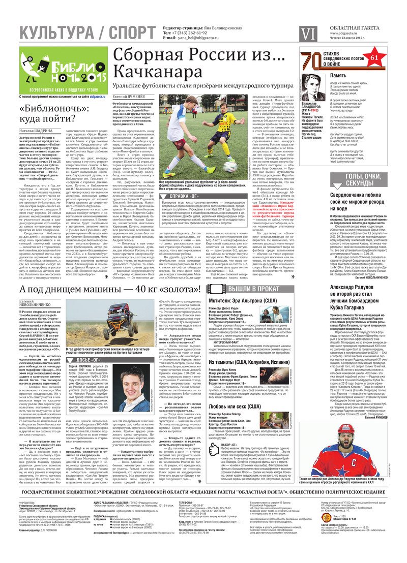 «Областная газета» № 72 (7638) от 23 апреля 2015 года