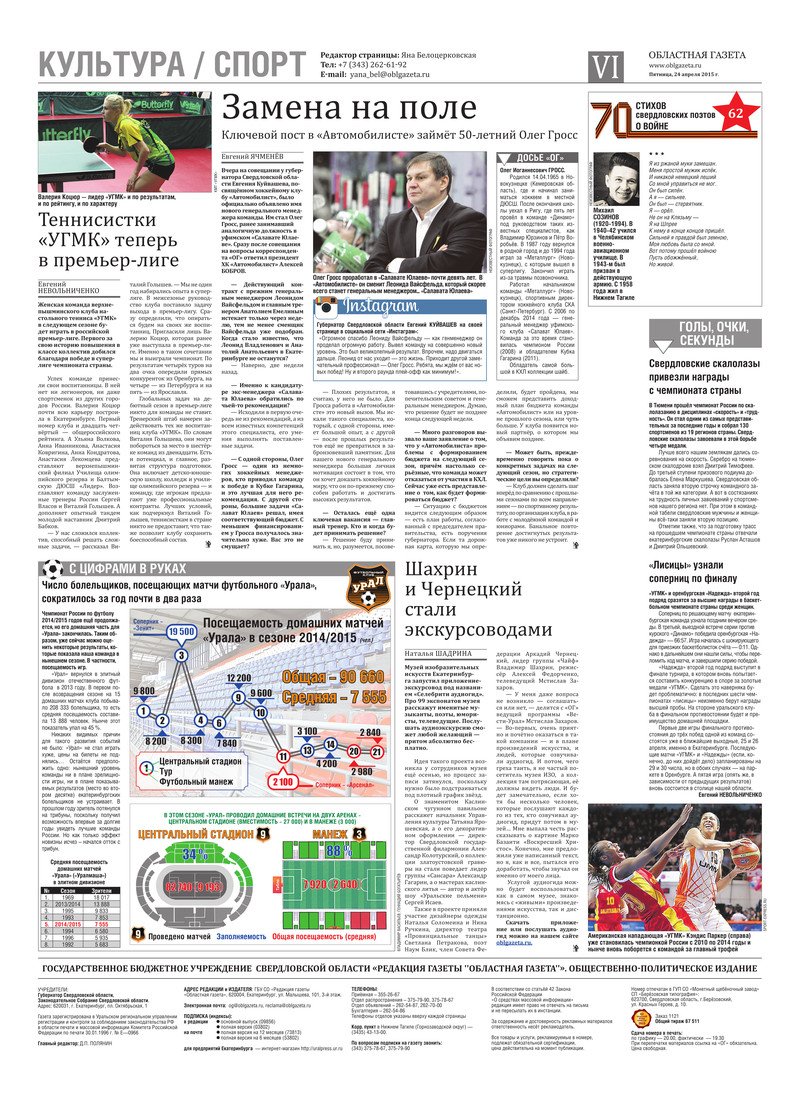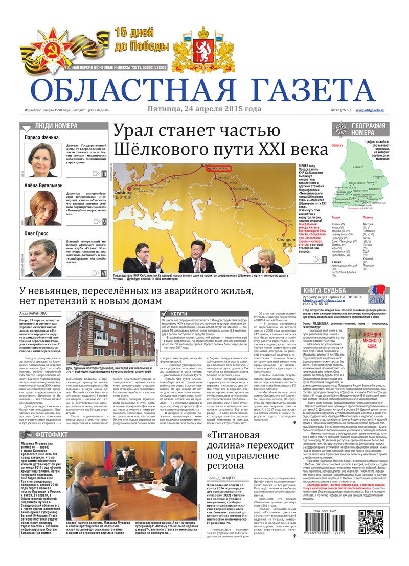 «Областная газета» № 73 (7639) от 24 апреля 2015 года