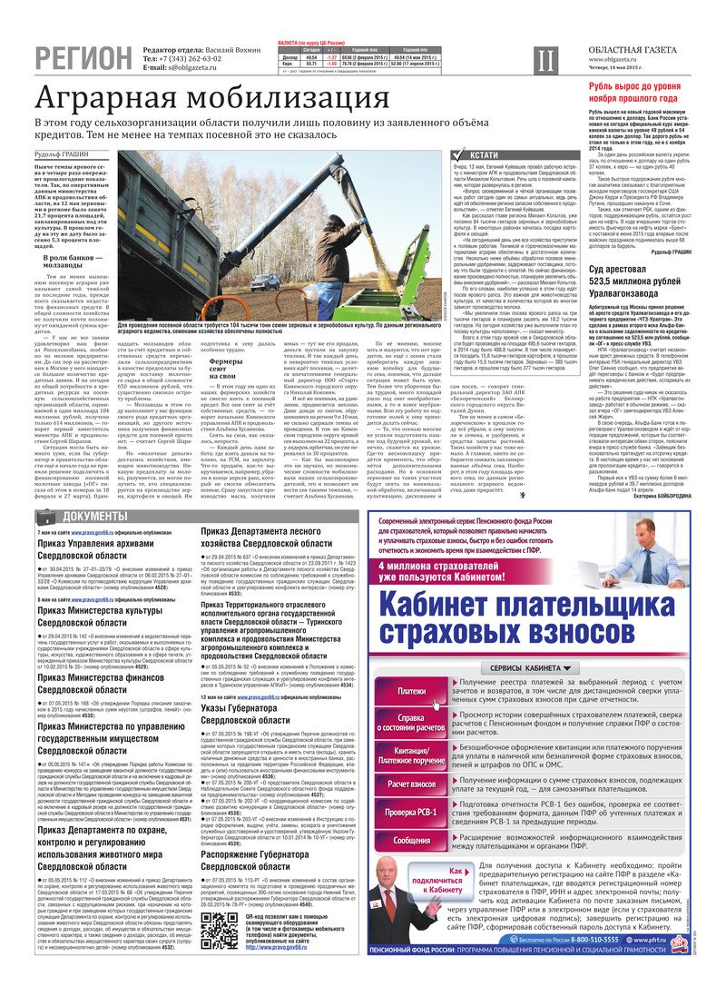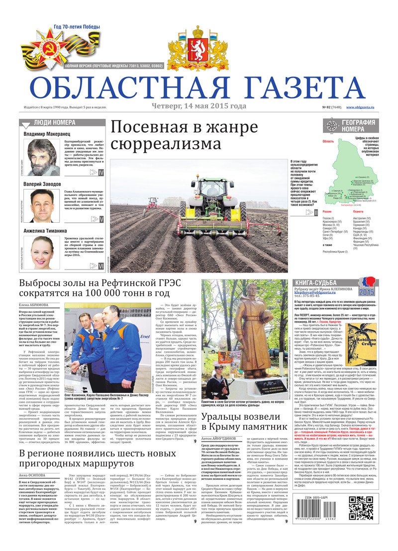 «Областная газета» № 82 (7648) от 14 мая 2015 года