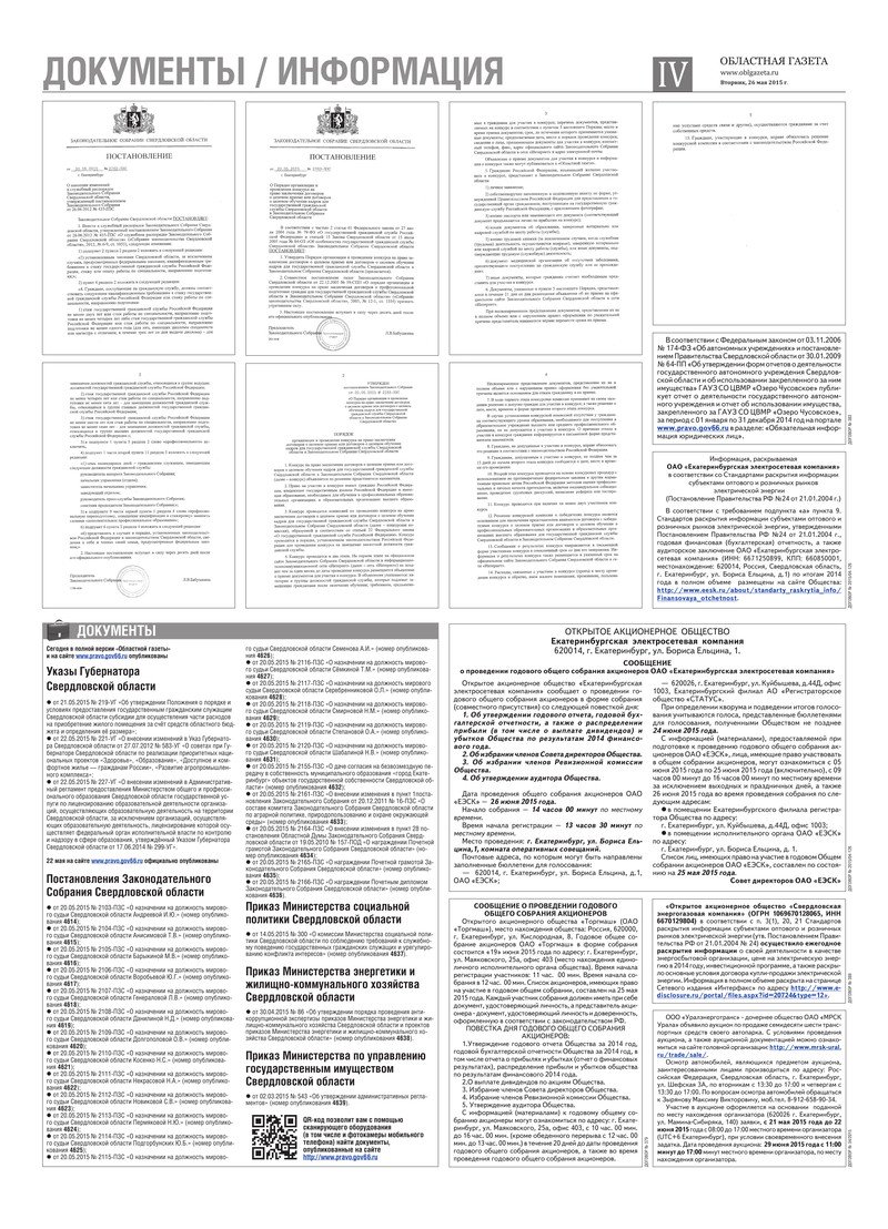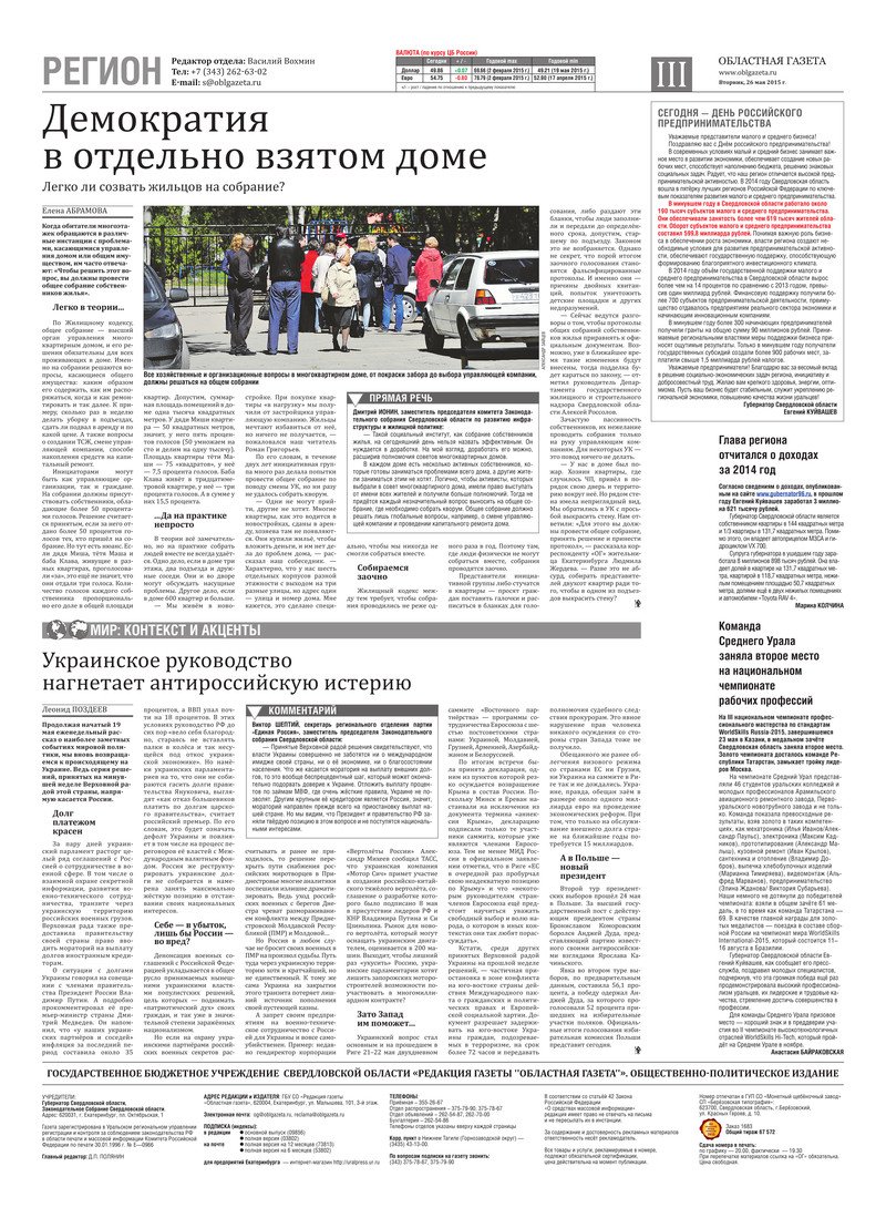«Областная газета» № 90 (7656) от 26 мая 2015 года