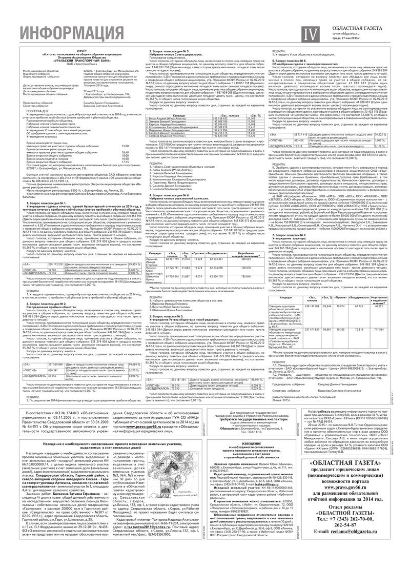 «Областная газета» № 91 (7657) от 27 мая 2015 года