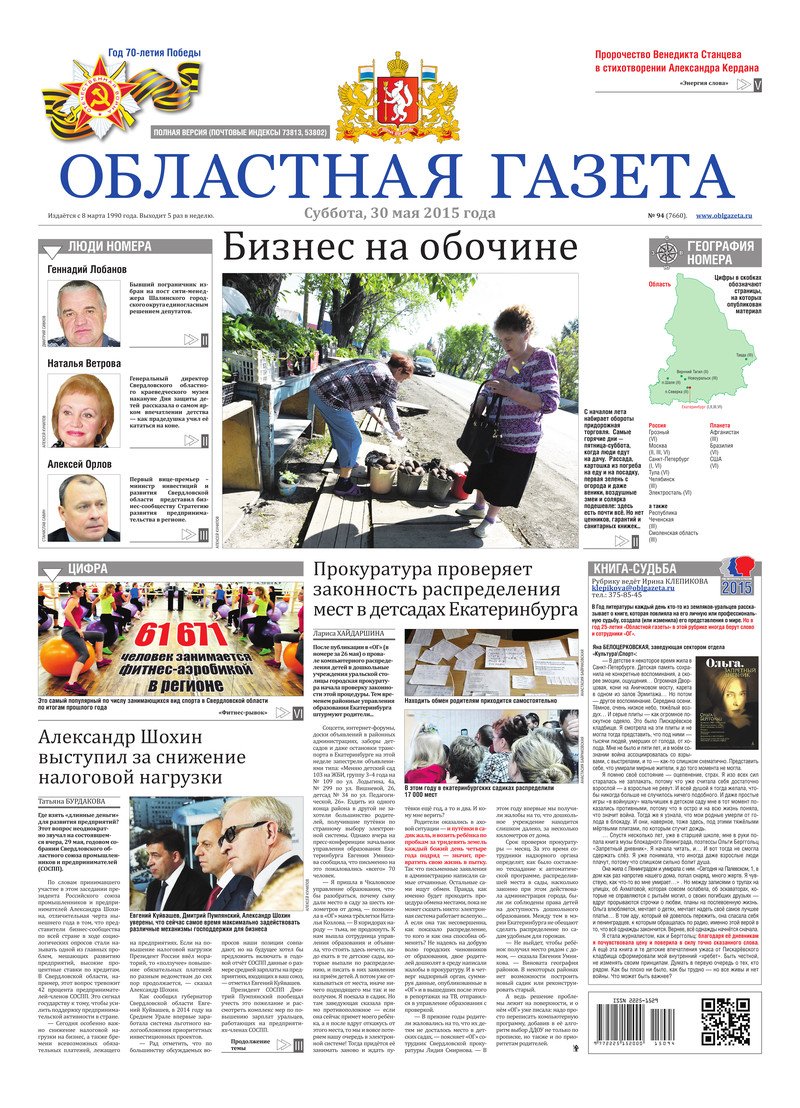 «Областная газета» № 94 (7660) от 30 мая 2015 года