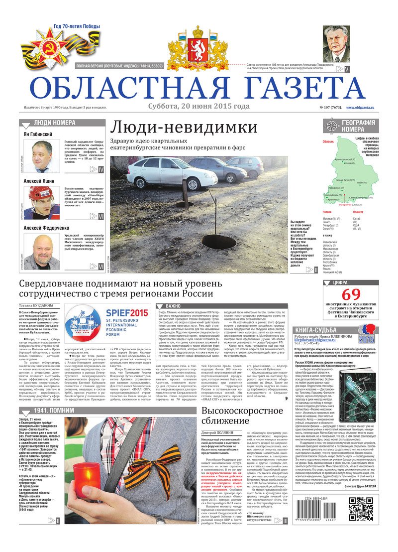 «Областная газета» № 107 (7673) от 20 июня 2015 года