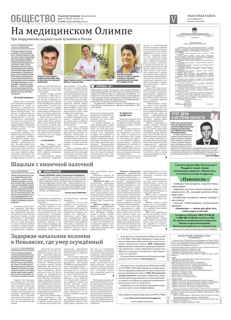 «Областная газета» № 118 (7684) от 7 июля 2015 года